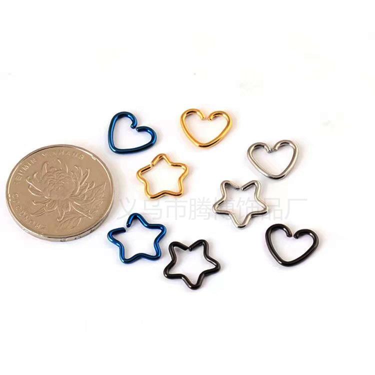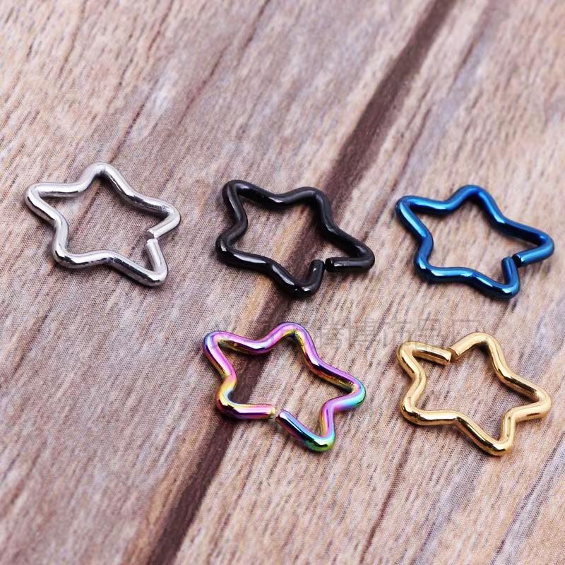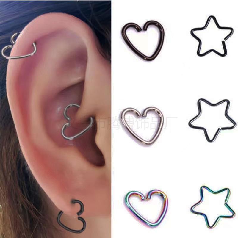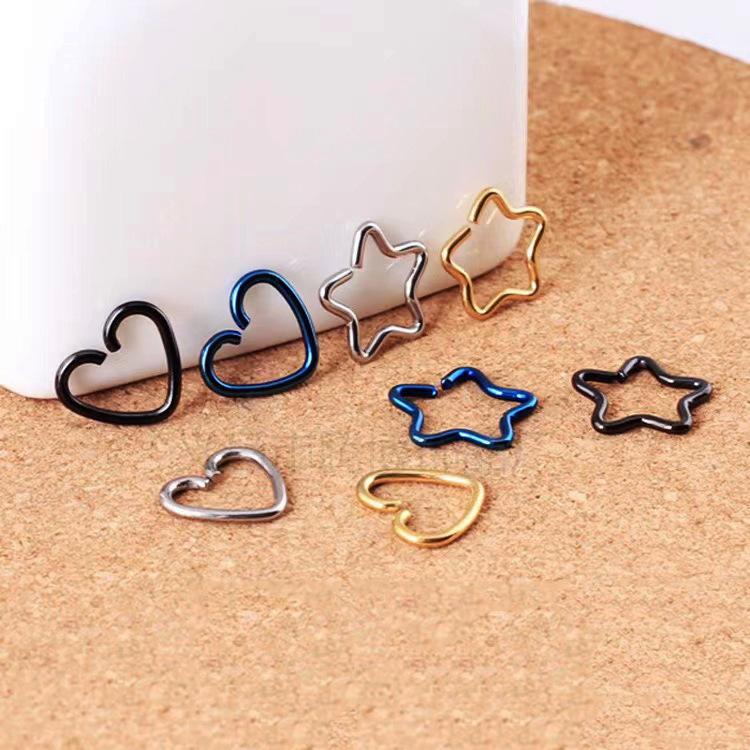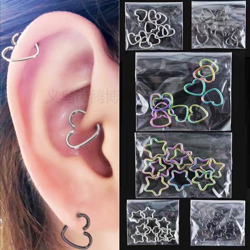 Pendientes de acero inoxidable con forma de corazón, diseño de estrella de cinco puntas, para la nariz, sin orificio para la oreja, con clip para la oreja, para el cartílago y la uña.