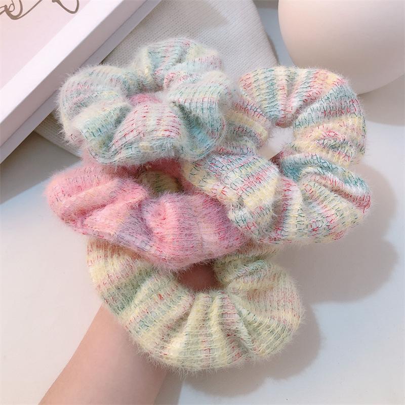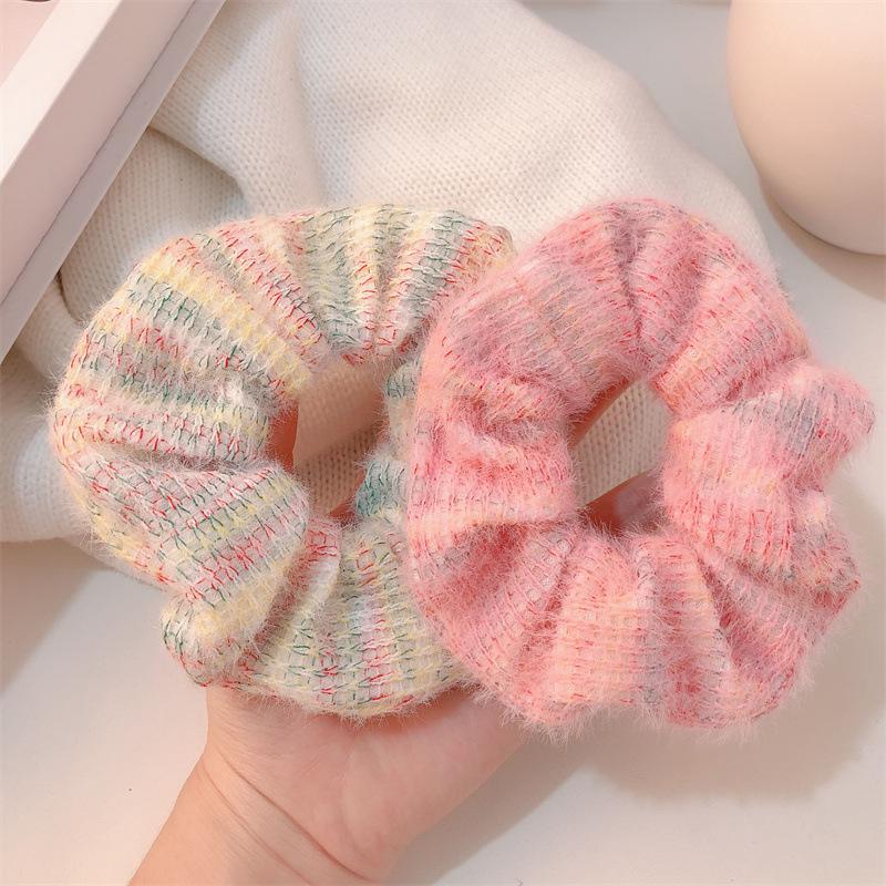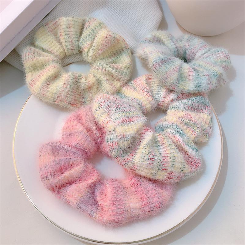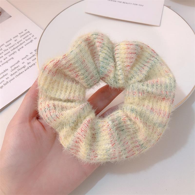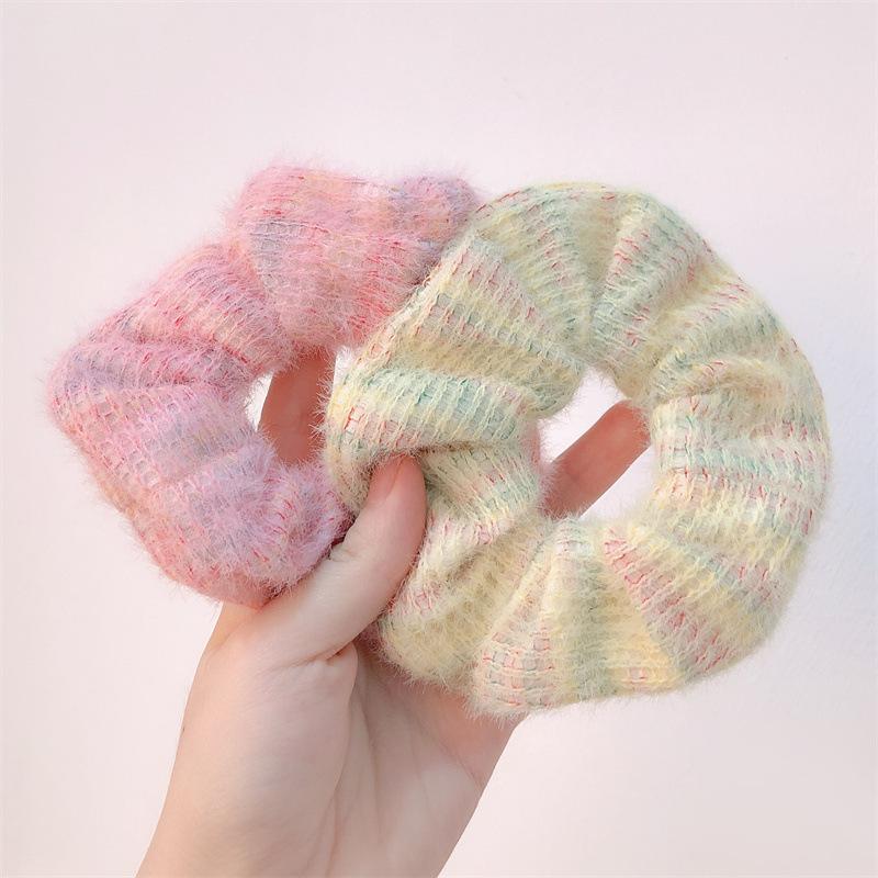 Cuerda para el cabello glutinoso suave y dulce para otoño e invierno, anillo para el cabello de intestino grueso con encaje tejido de lana, linda cuerda para el cabello para niña que combina con todo, accesorios para el cabello