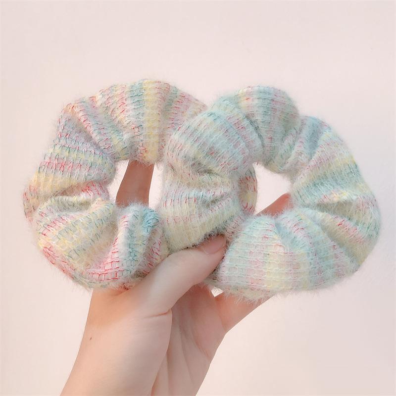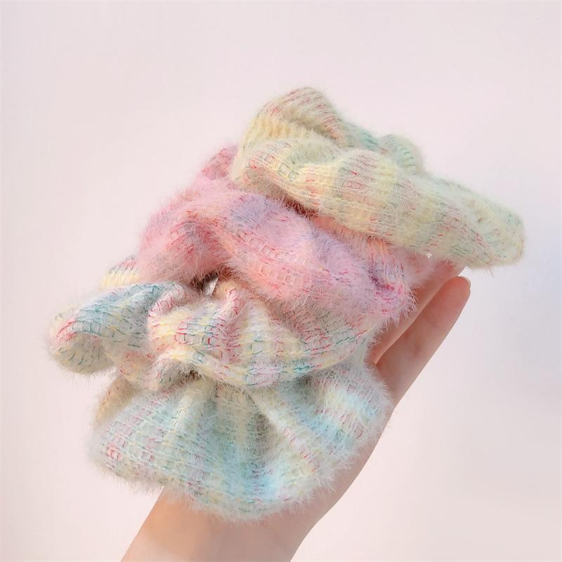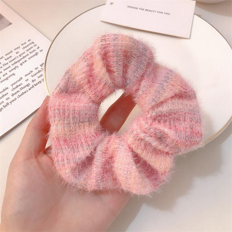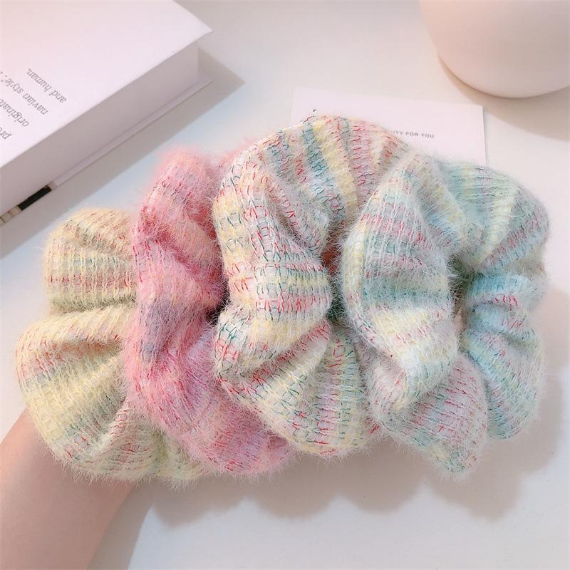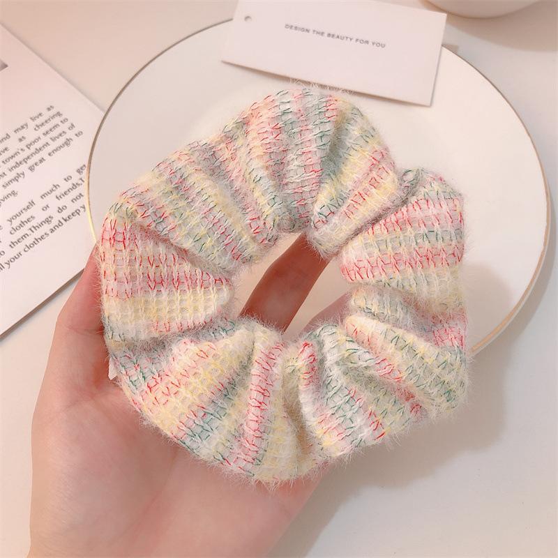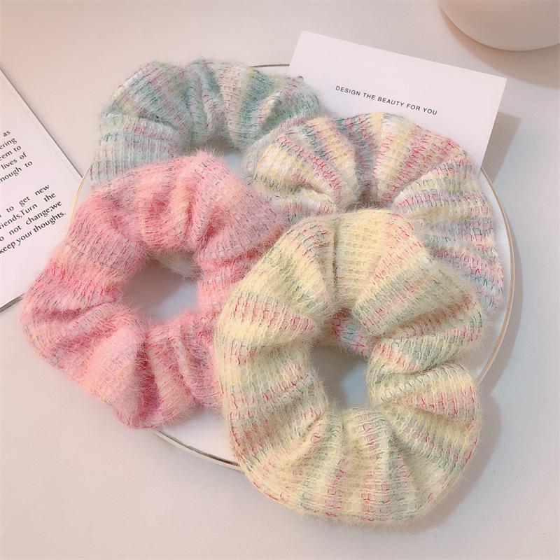 Cuerda para el cabello glutinoso suave y dulce para otoño e invierno, anillo para el cabello de intestino grueso con encaje tejido de lana, linda cuerda para el cabello para niña que combina con todo, accesorios para el cabello