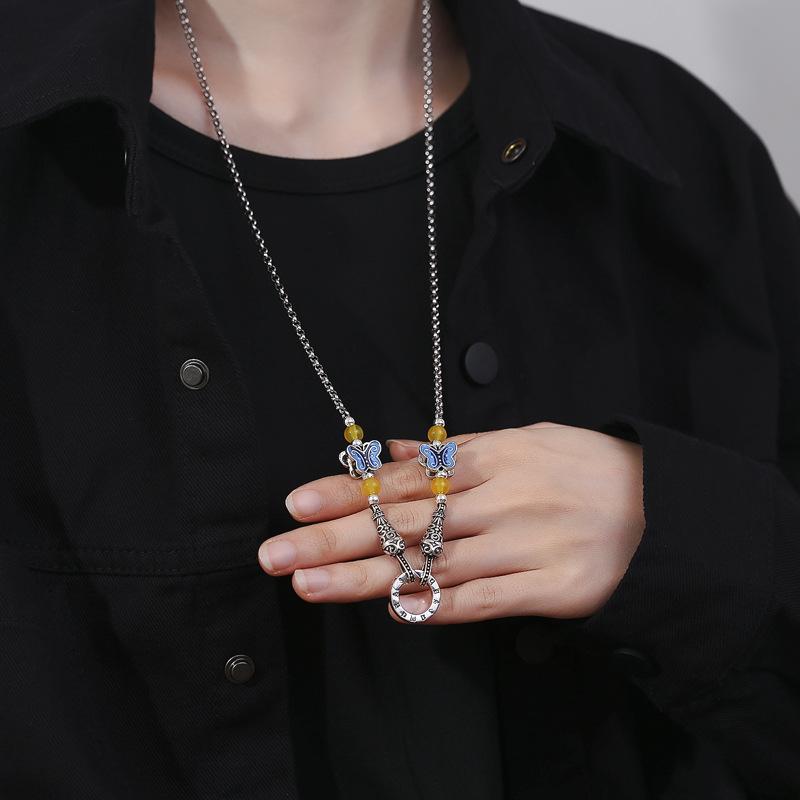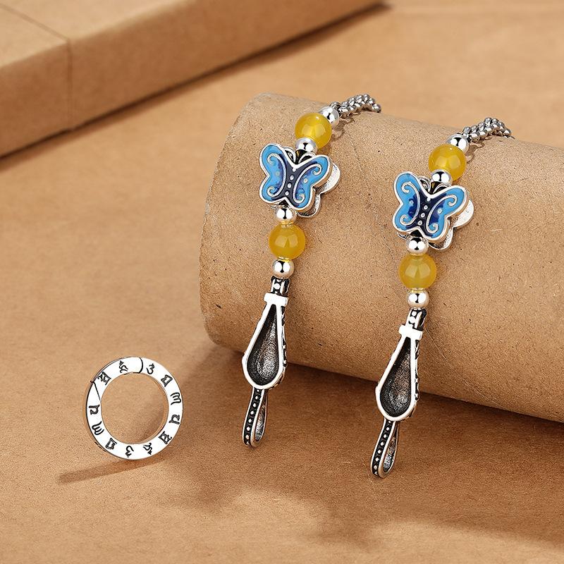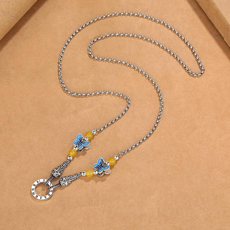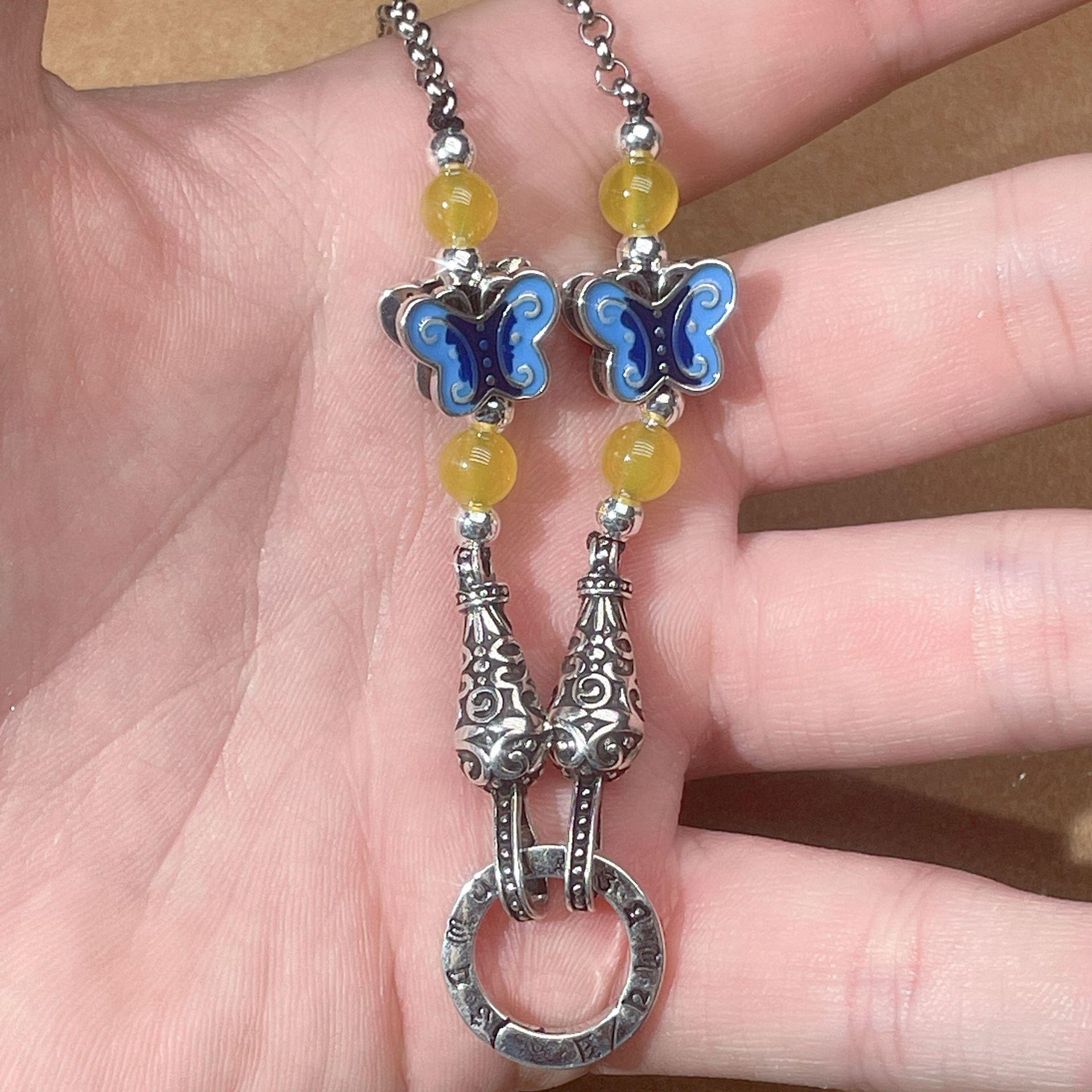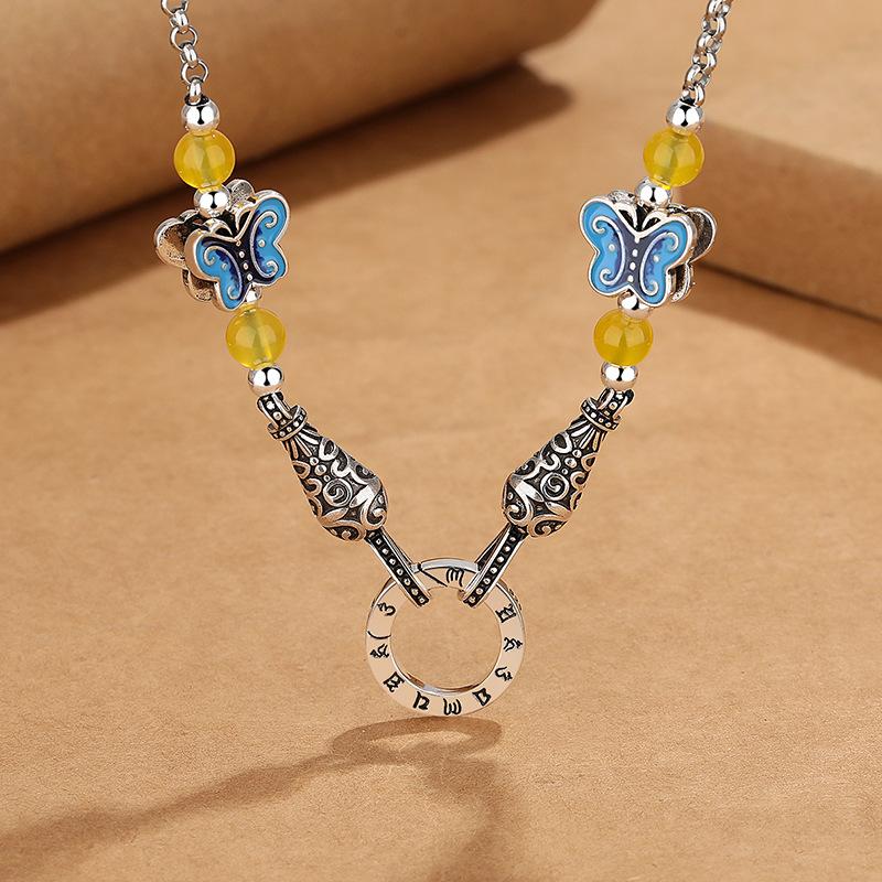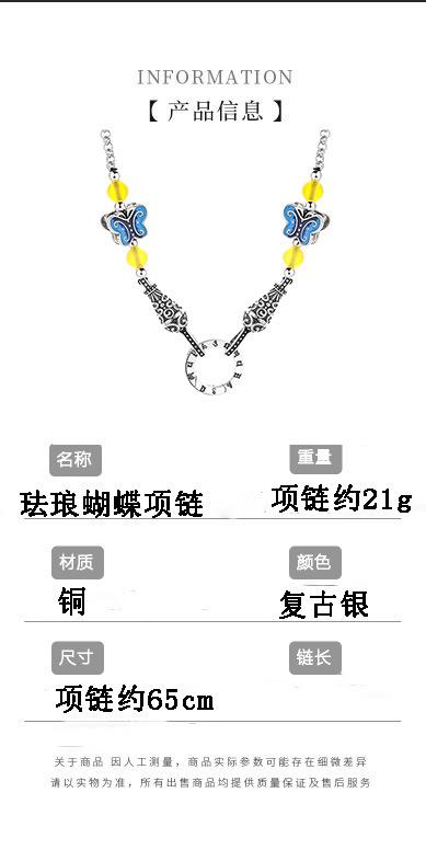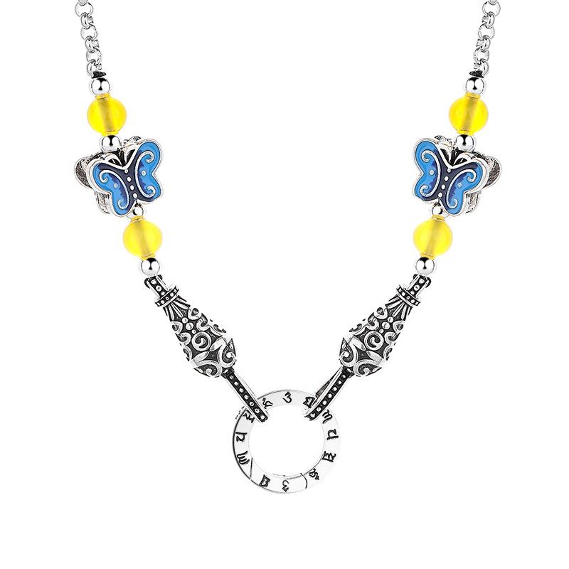Nuevo collar de mariposa de esmalte de ágata amarilla cloisonné de moda nacional para mujer, cadena larga de suéter de plata tailandesa con artesanía epoxi desgastada