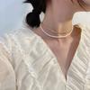 Collar y pulsera de doble capa con perlas de agua dulce de estilo retro francés para mujer, estilo coreano, sencillo y elegante, combina con todo, cadena para clavícula.
