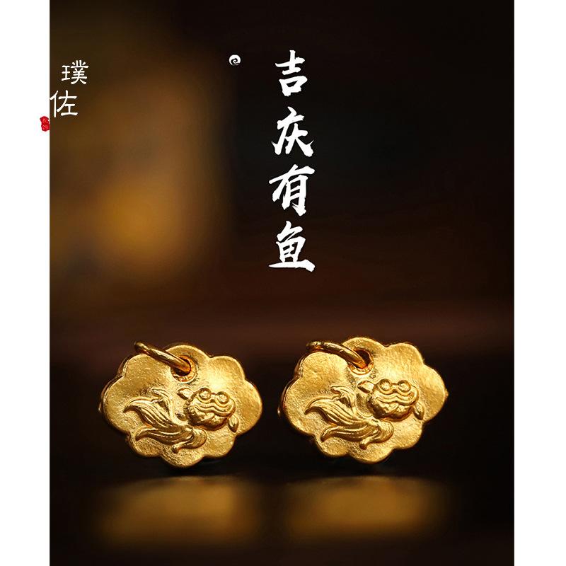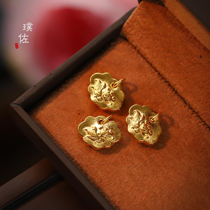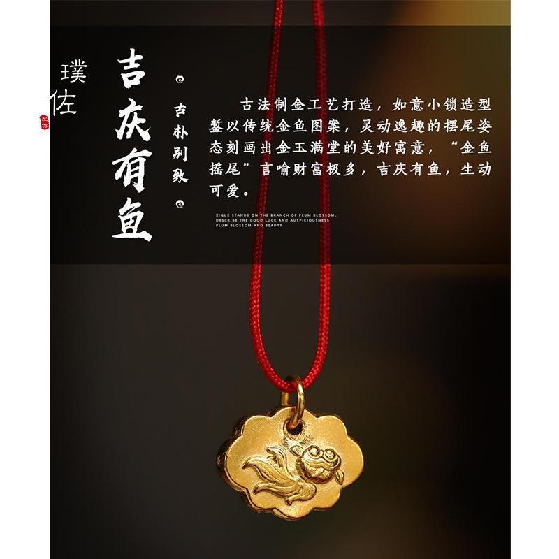 Tienda de oro con salazón de oro, pequeño colgante de candado Ruyi con forma de pez dorado, accesorios de bricolaje, pulsera, collar, colgante de candado de la paz