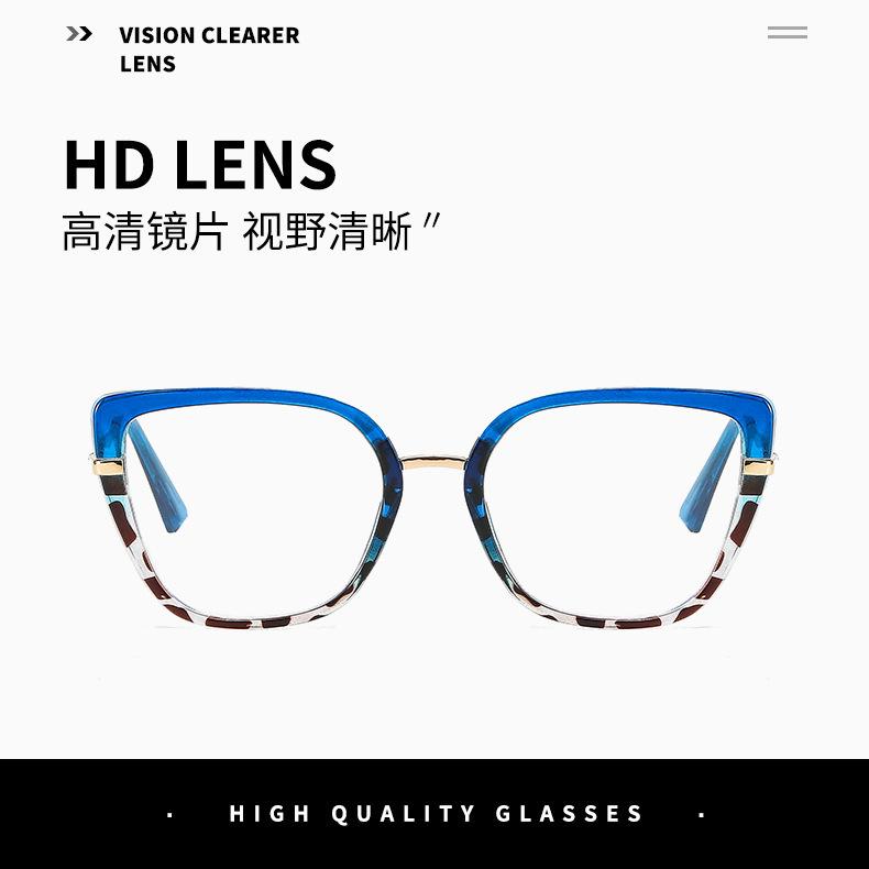 Gafas Ojo de Gato de Moda, Armazones de Gafas Anti Luz Azul para Hombres y Mujeres, Colores Lisos Contrastantes, Estilo Europeo y Americano Transfronterizo, Gafas Planas Ins