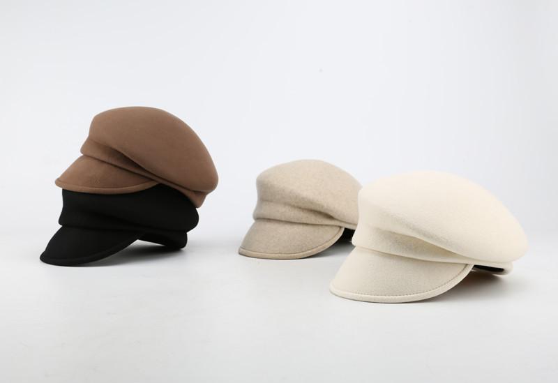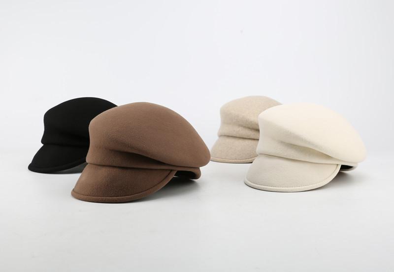 Gorro de vendedor de periódicos de lana para otoño e invierno, boina de fieltro de lana para mujer, gorra con visera de fieltro de lana francesa, sombrero de pintor