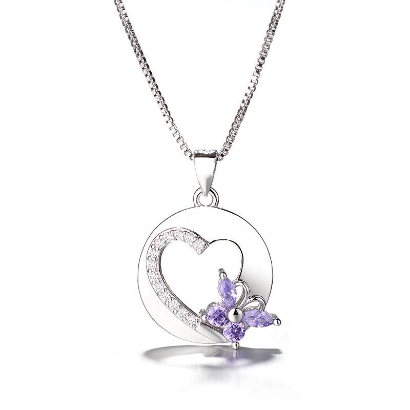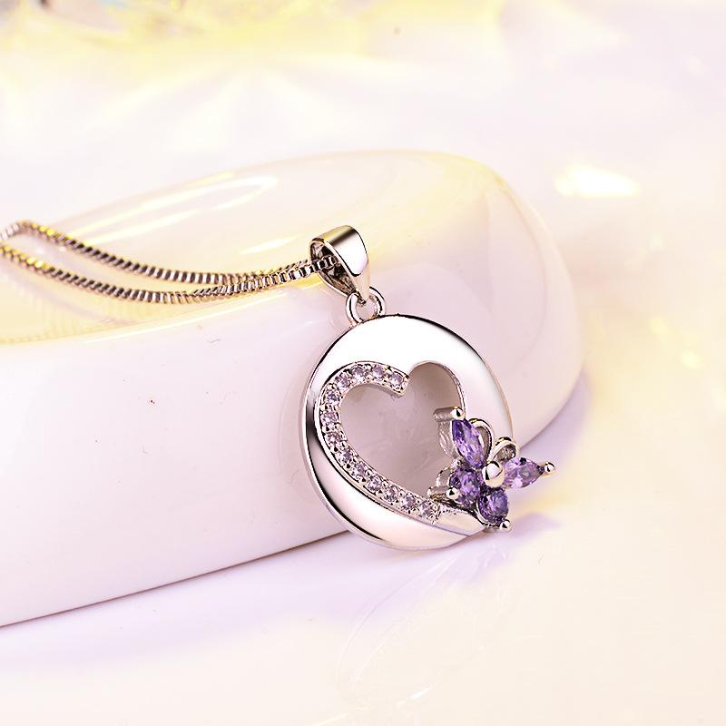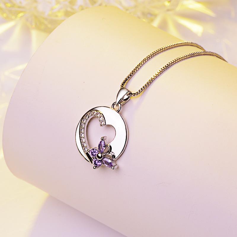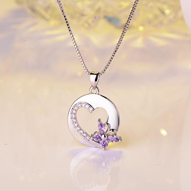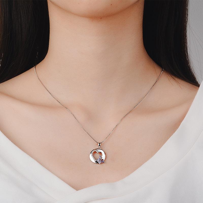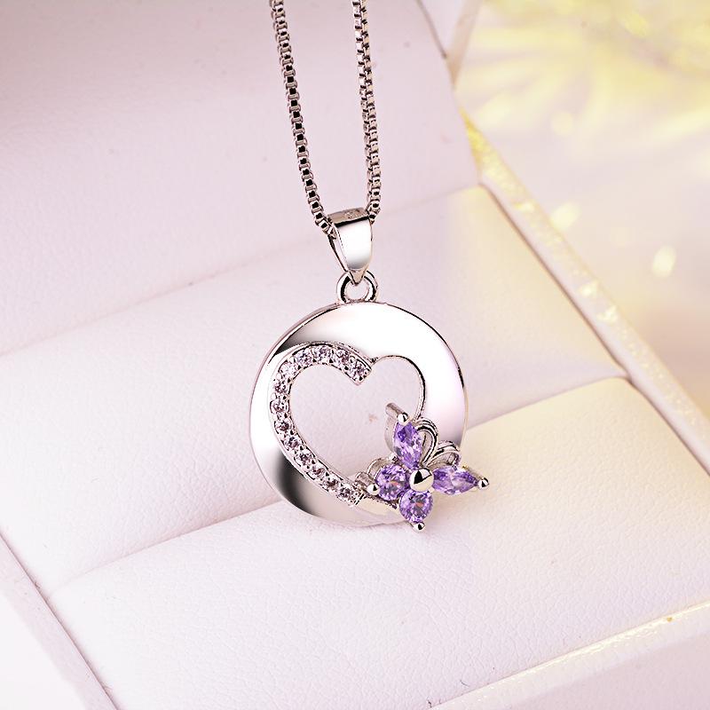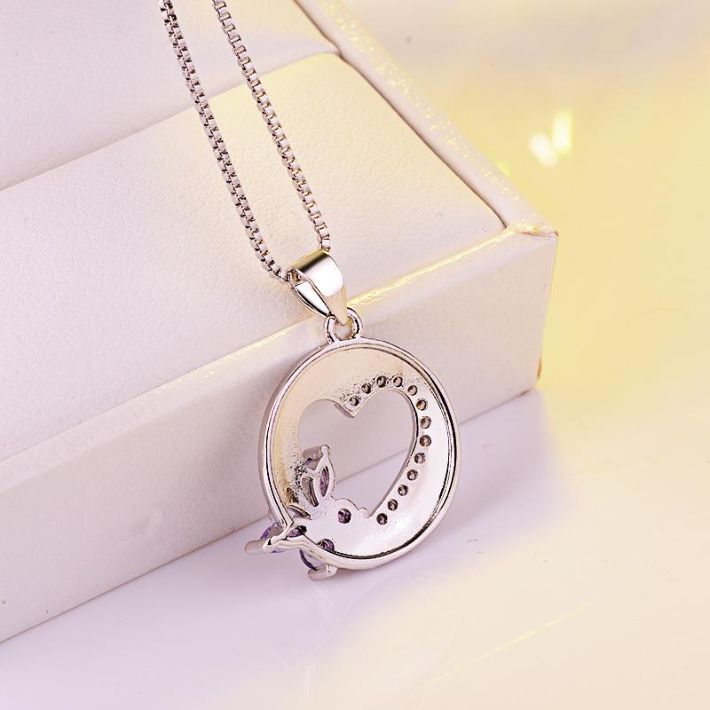 Zhenrong Joom Amazon Wish New Bow Heart Colgante Collar de amatista con incrustaciones de moda europea y americana