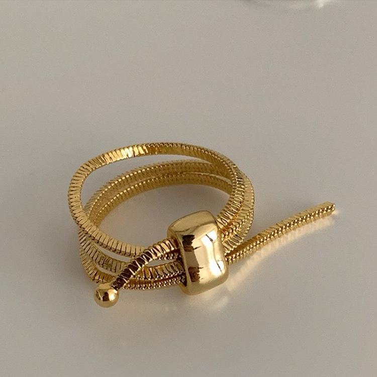 Anillo Abierto de Metal con Cadena Multicapa de Diseño Nicho para Mujer, Personalidad Retro, Combinable, Elegante, Moda, Anillo Anillo