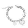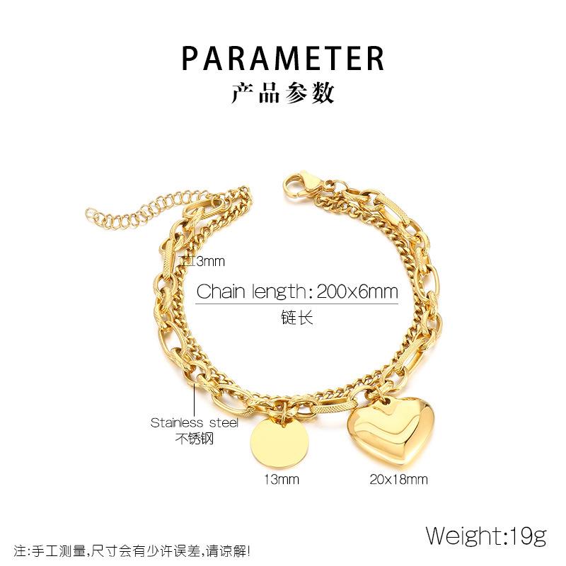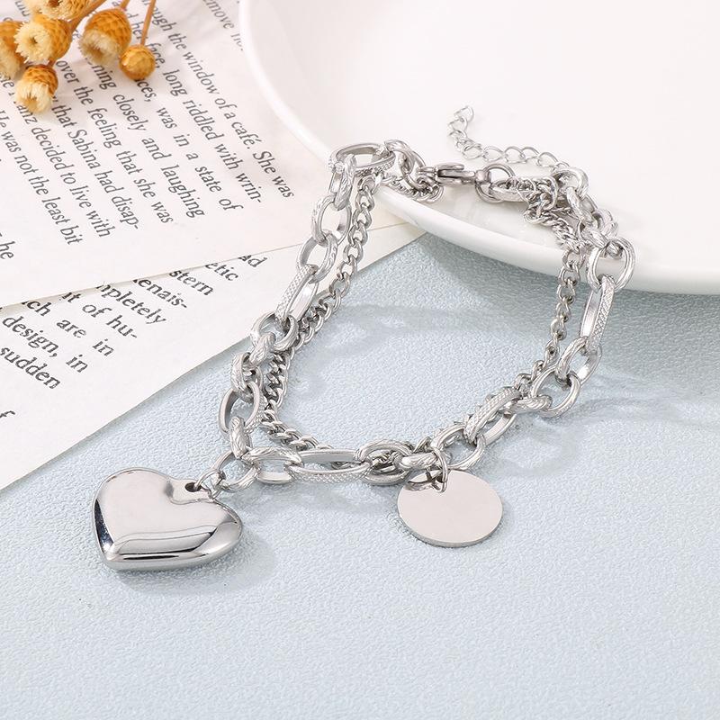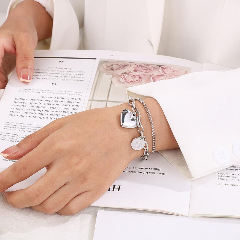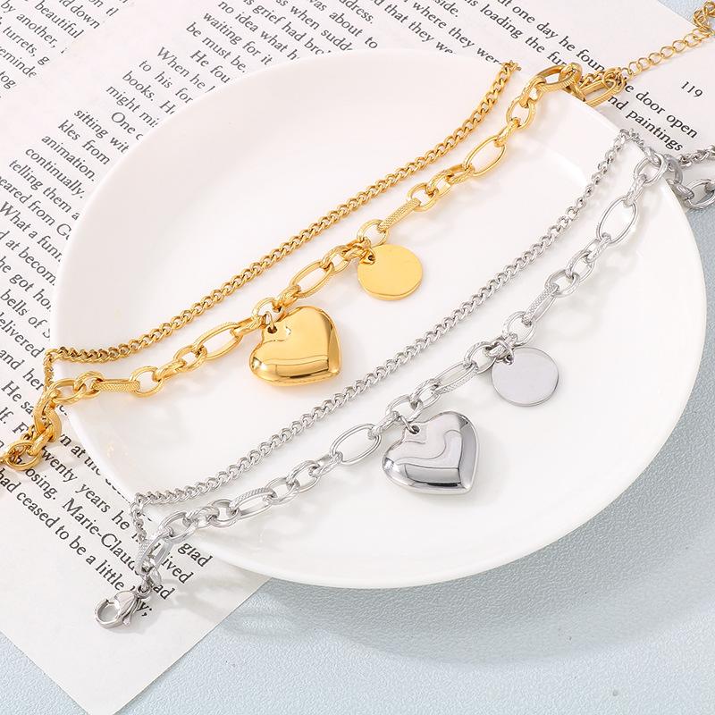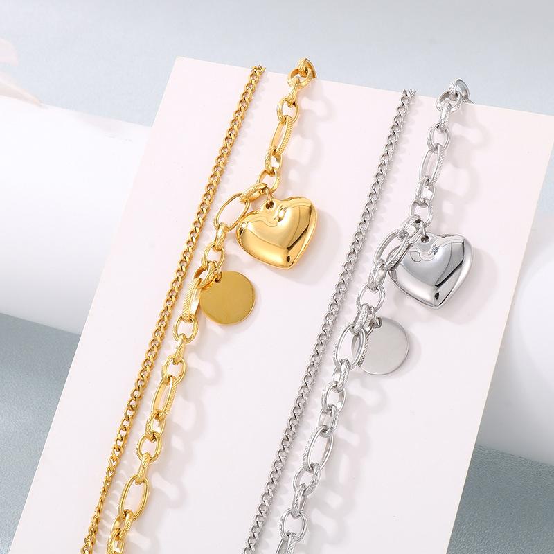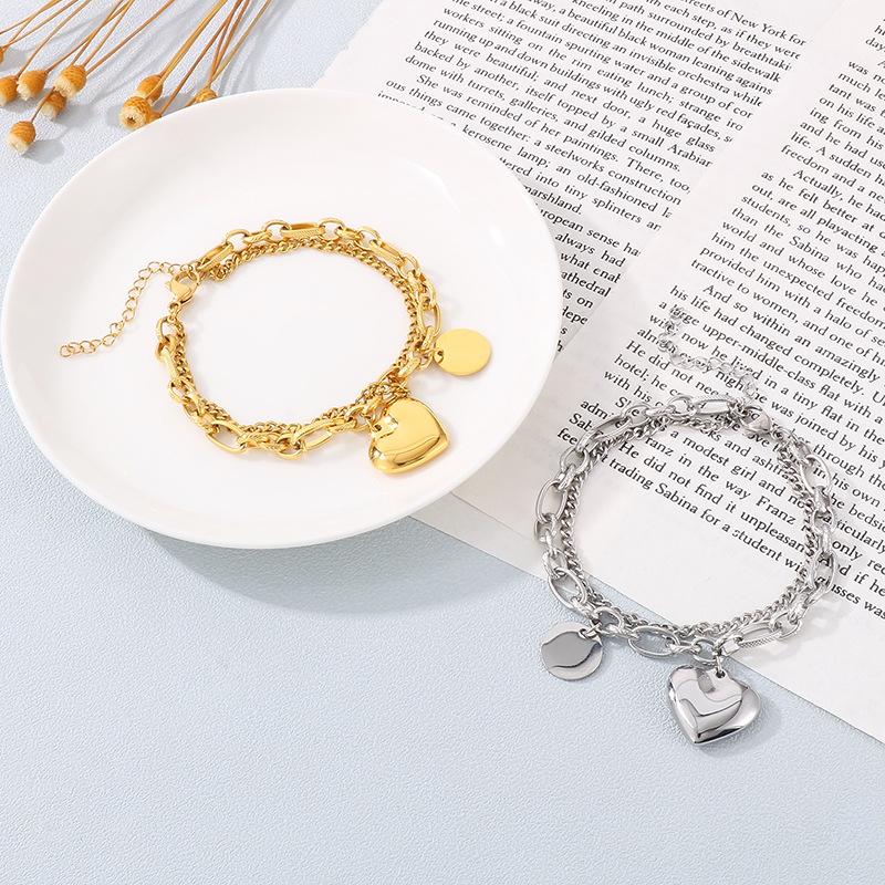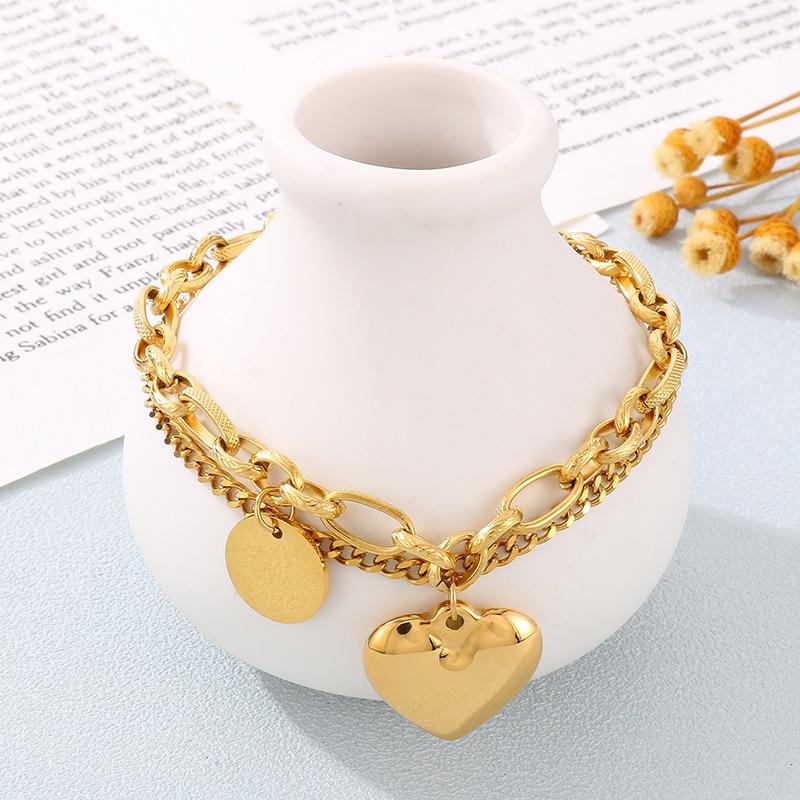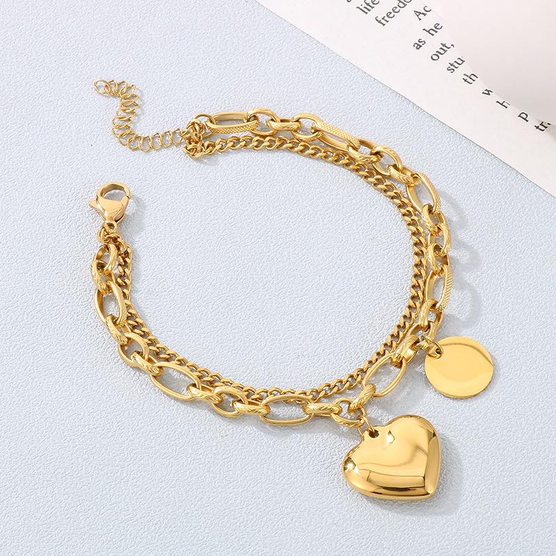 Pulsera de temperamento de personalidad europea y americana de acero de titanio en forma de corazón chapada en oro de 18 quilates pulsera de doble capa en forma de corazón joyería para mujer al por mayor
