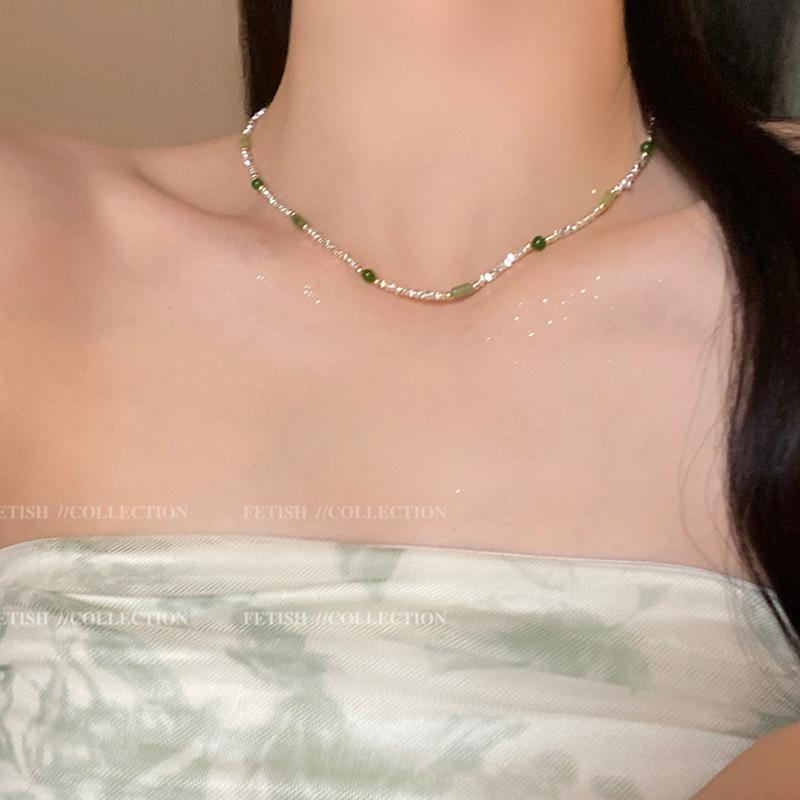 Nuevo Collar Plateado Retro Colorido Estilo Chino para Mujer 2024 Nueva Moda Trendy Versátil Cadena Clavícula Accesorio para el Cuello