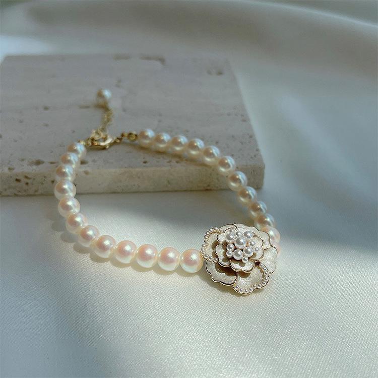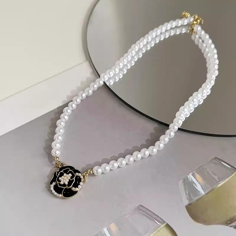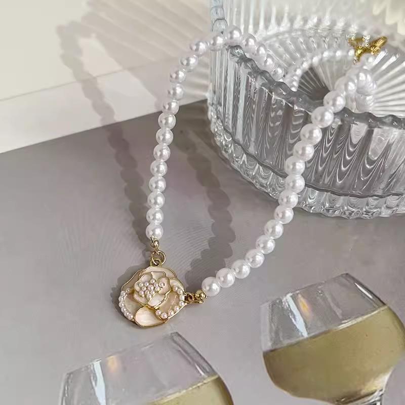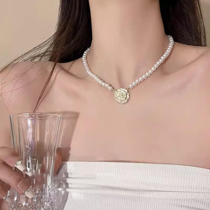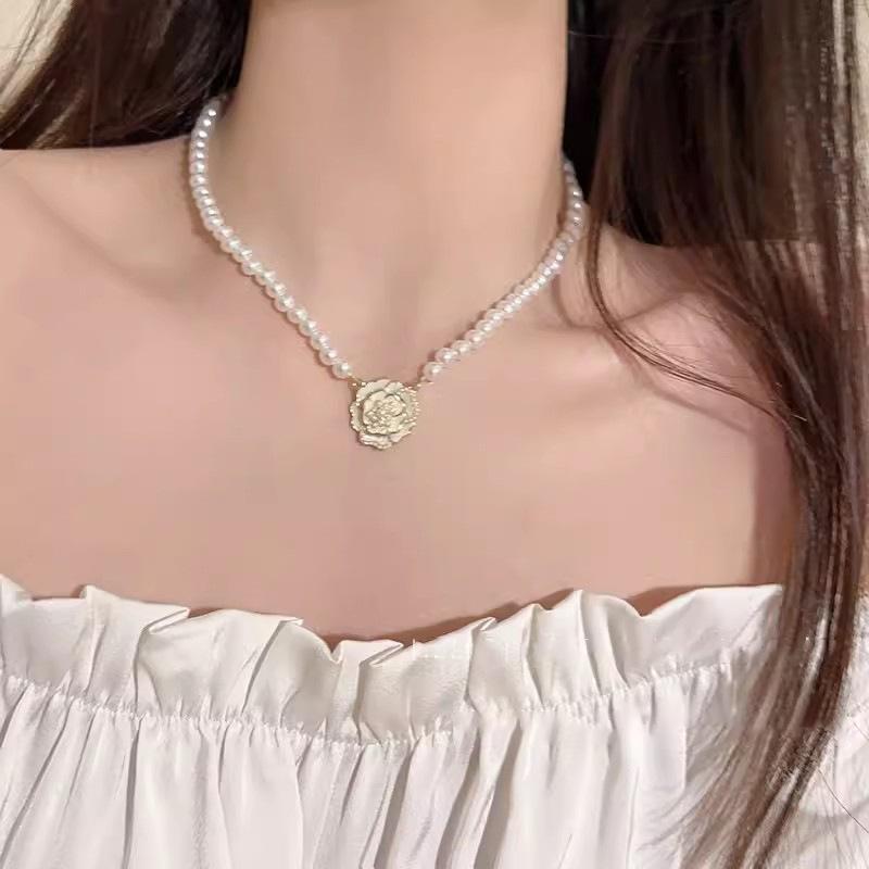 Delicado Collar Elegante Retro Francés Camelia Perla Exquisito Pequeño Temperamento Inmortal Cadena Collar Cadena