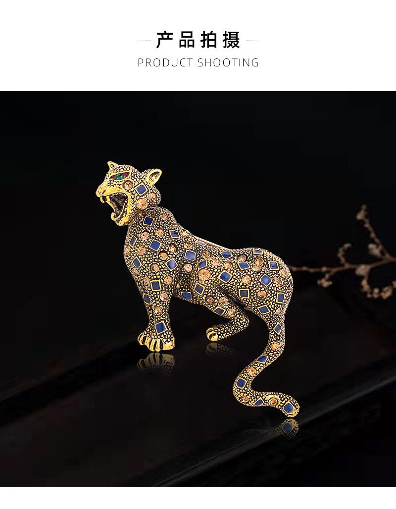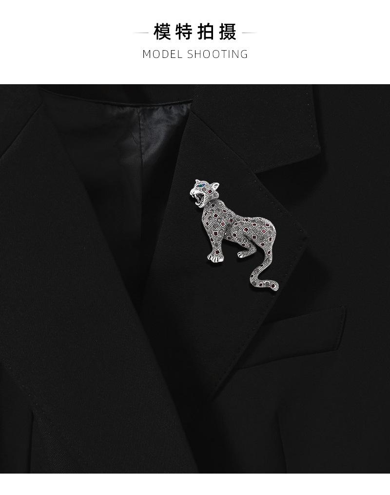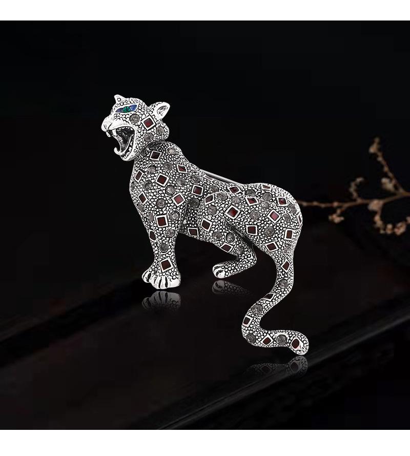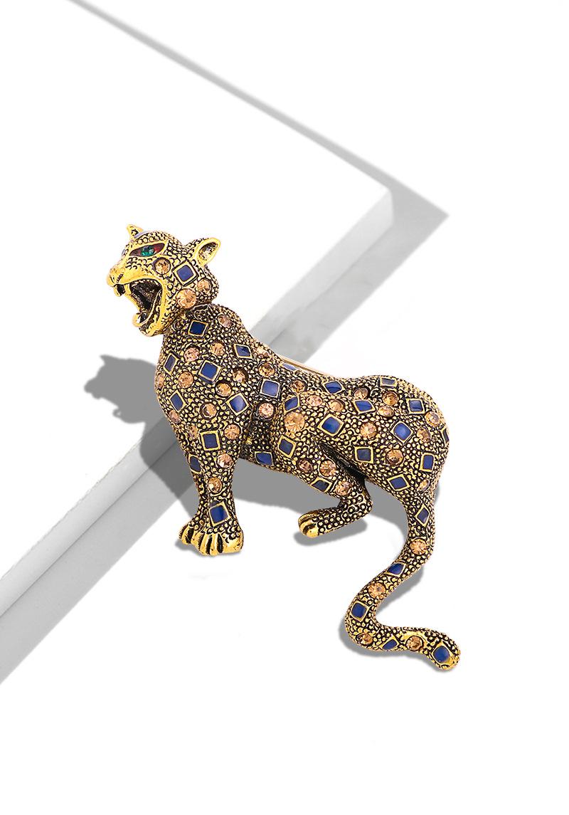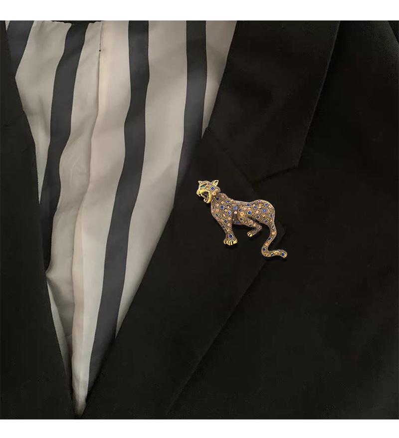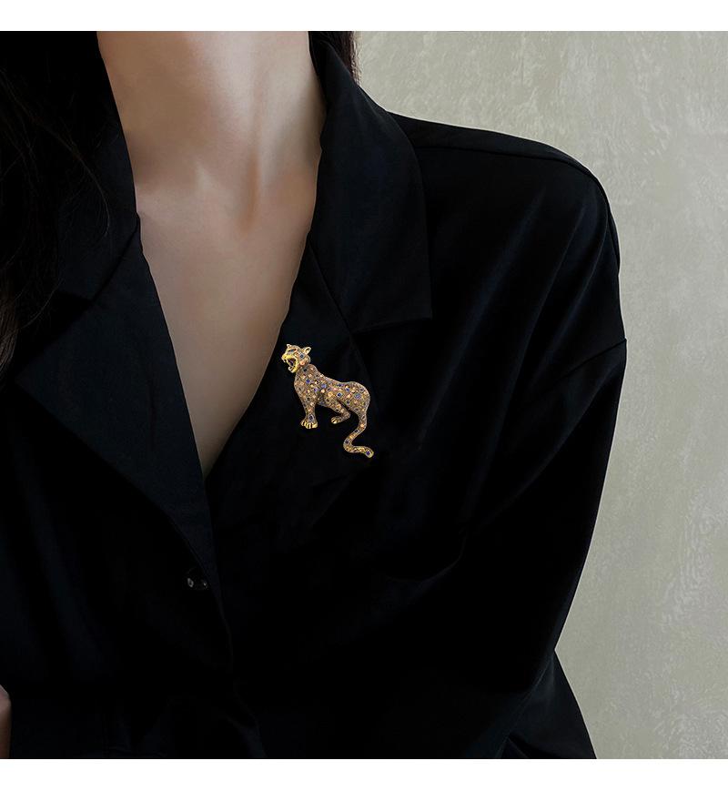 Nuevo broche de comercio exterior transfronterizo europeo y americano con forma de animal, broche retro con diamantes de imitación y leopardo, joyería