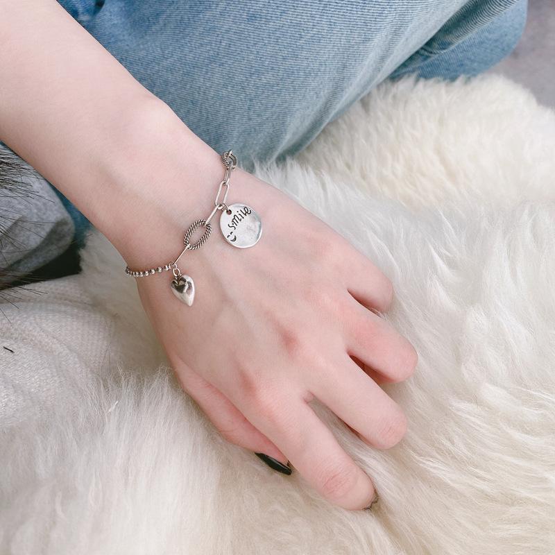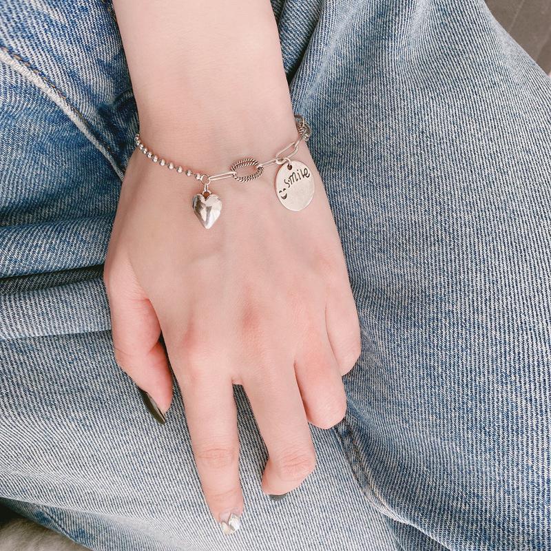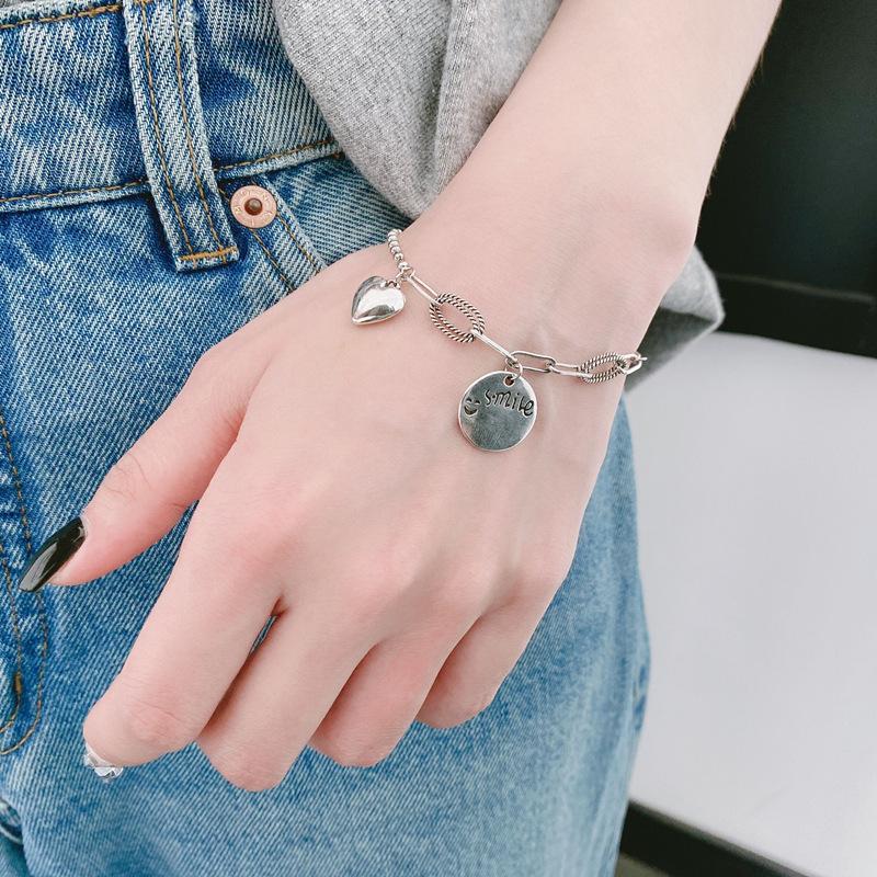 Pulsera Coreana Ins Diseño Nicho Plata Redonda Marca Corazón para Mujer Simple Cadena Tanque Pulsera de Cadena Pulsera