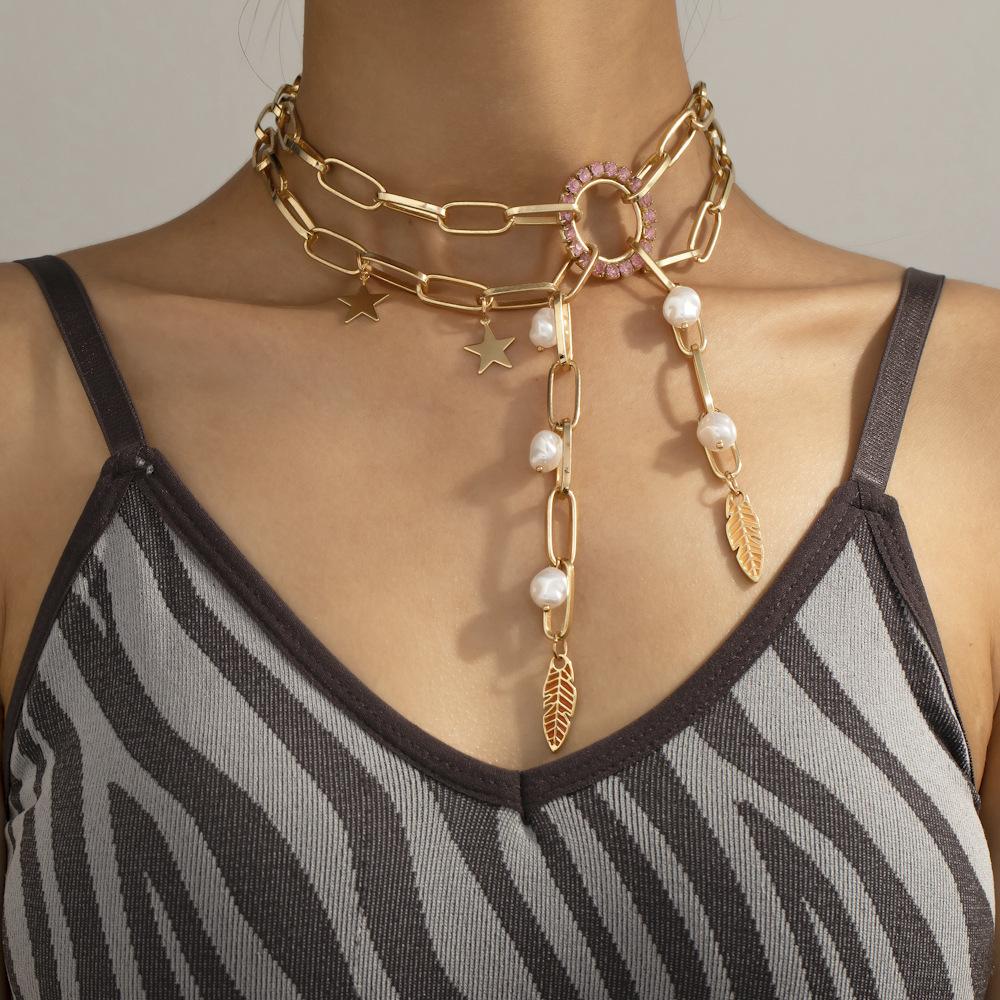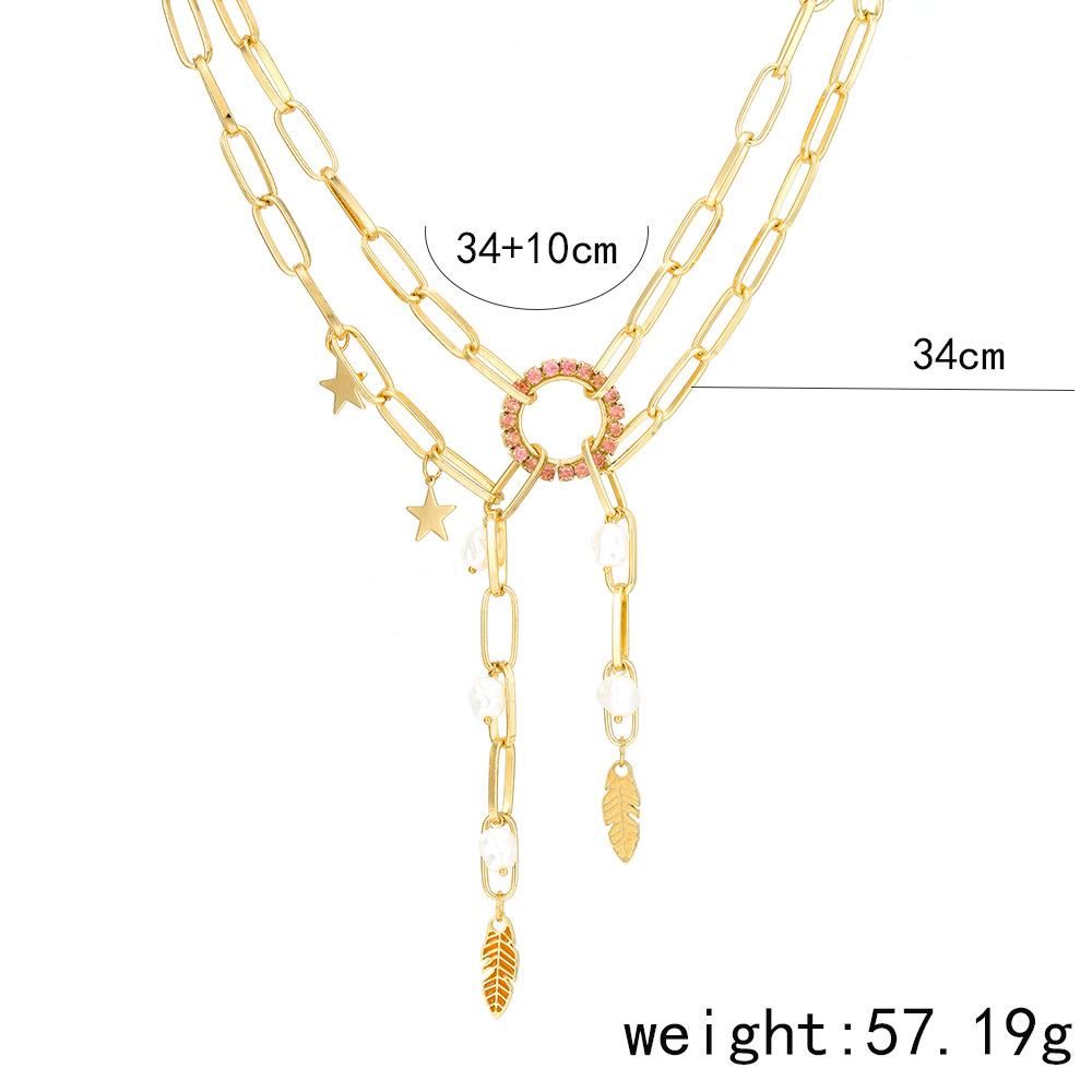 Collar de hojas retro de nueva moda transfronteriza europea y americana, personalizado, simple, con borlas y costuras de perlas, collar multicapa
