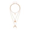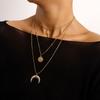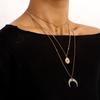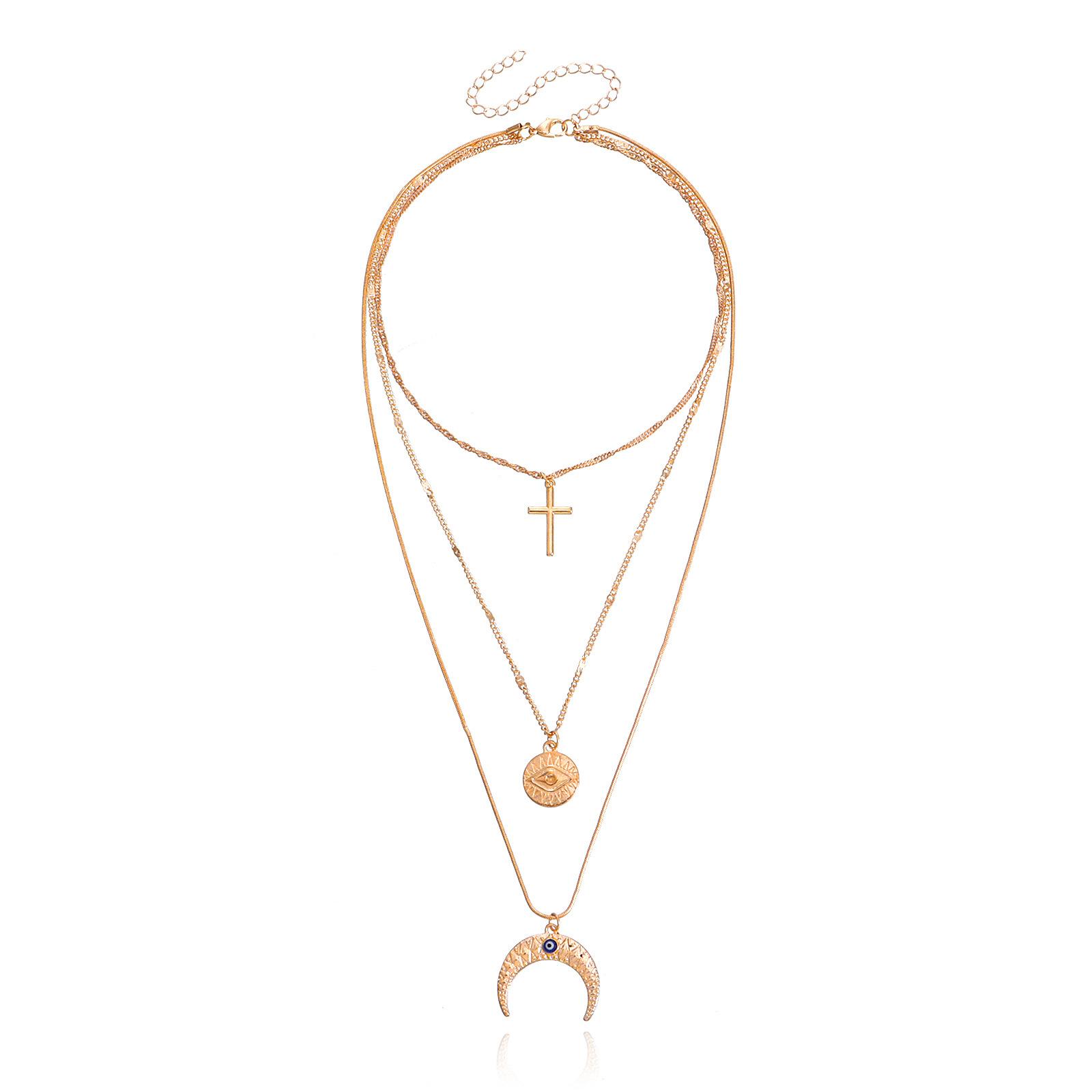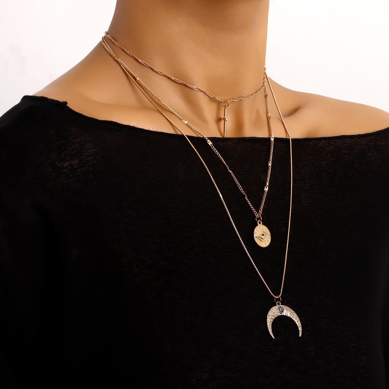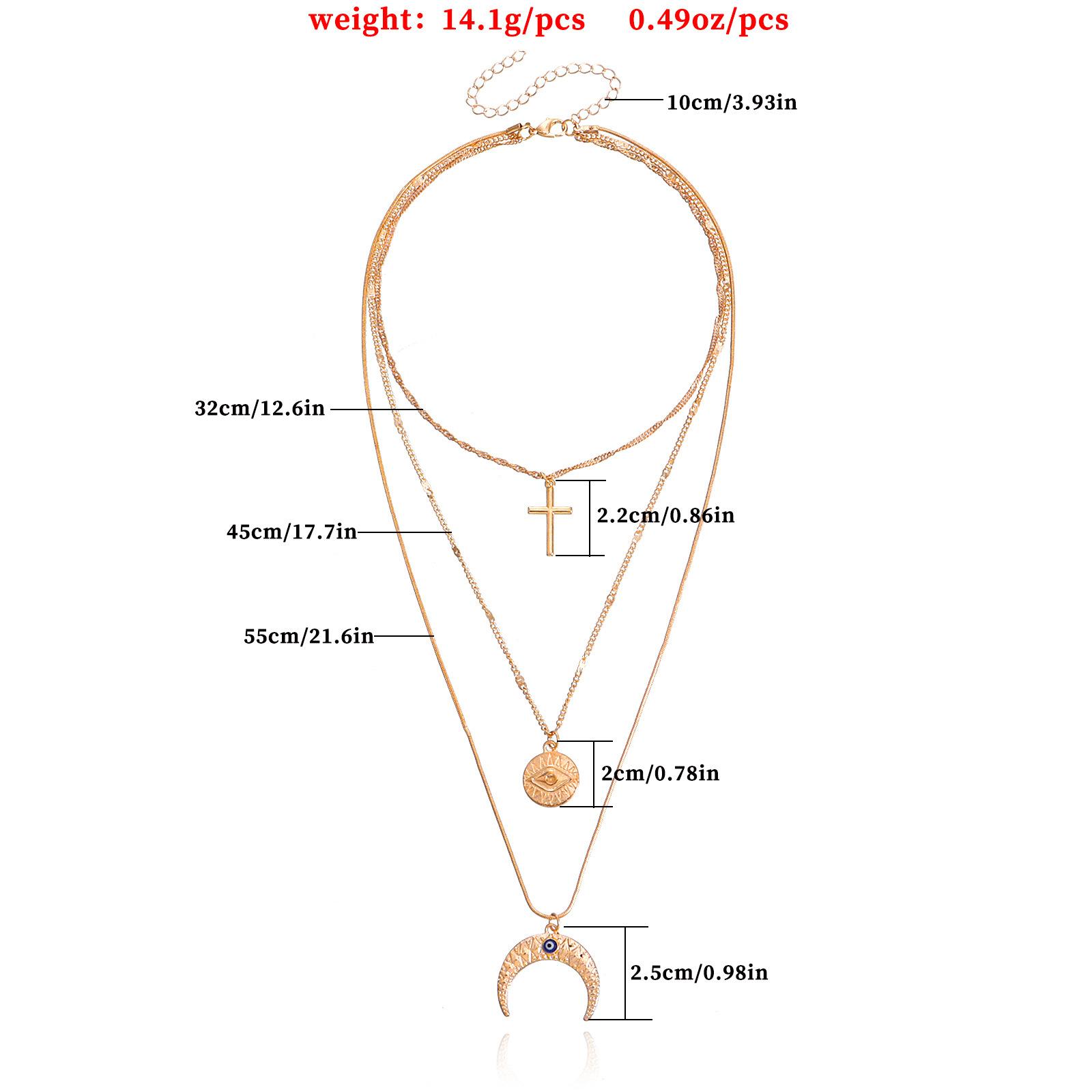 Collar con colgante de media luna con ojo de diablo azul y cruz multicapa, joyería transfronteriza europea y americana, de lujo, ligero y a la moda, para mujer.