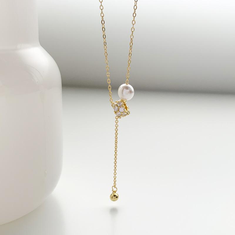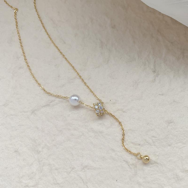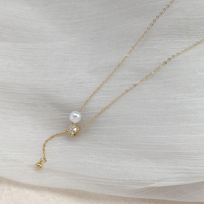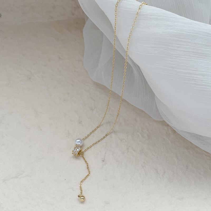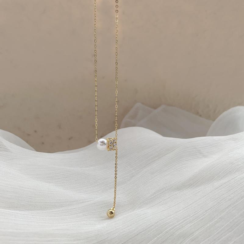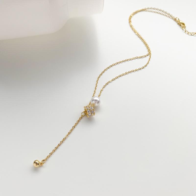 Cadena de clavícula de circonita microincrustada con diseño de nicho de estilo coreano, cuentas sencillas que combinan con todo, exquisita borla con baño de cobre y oro real.