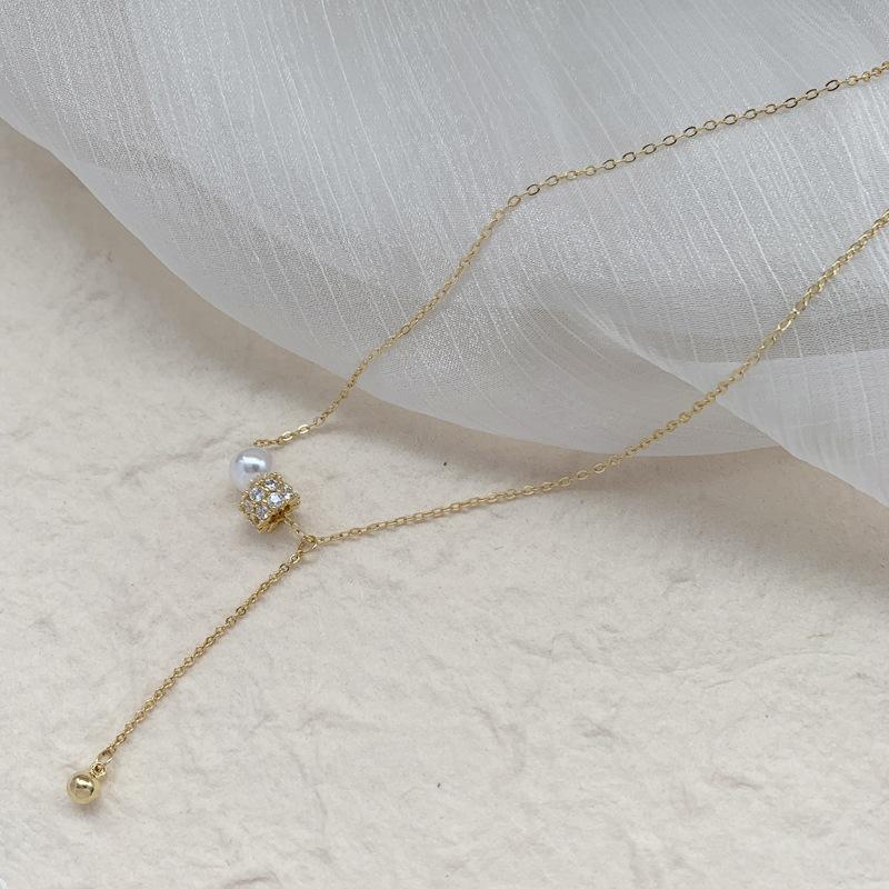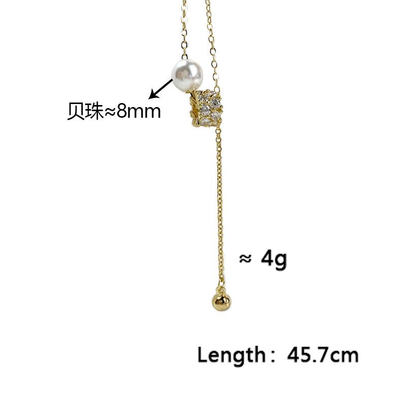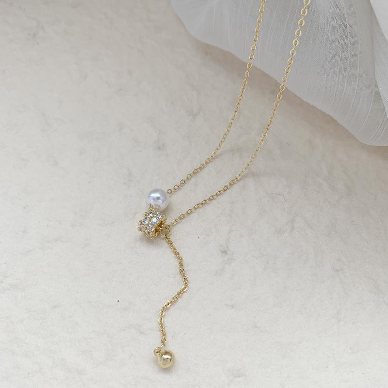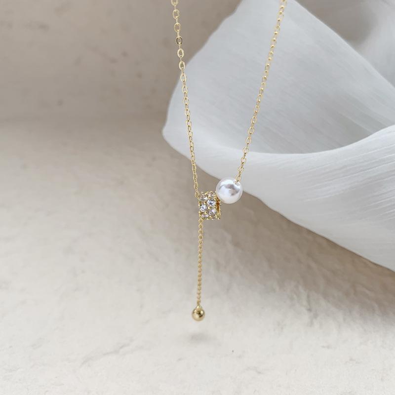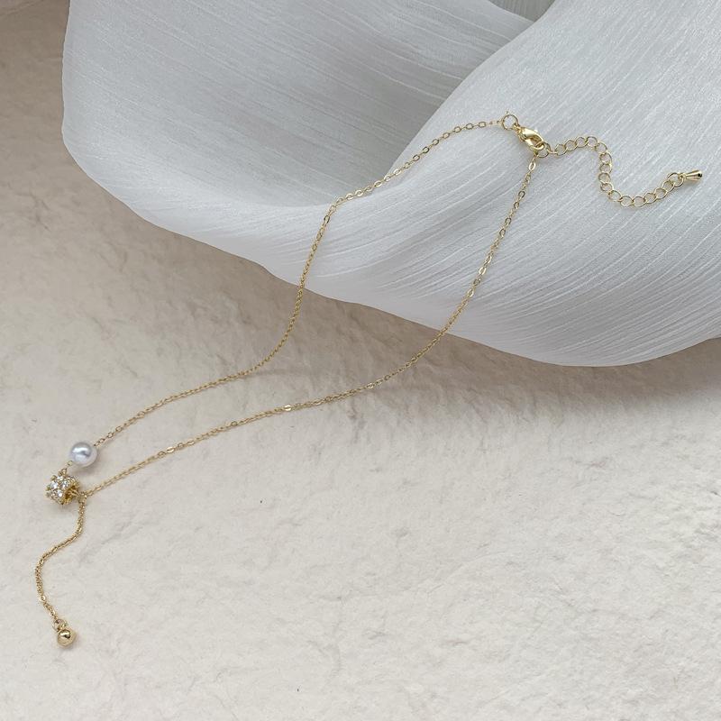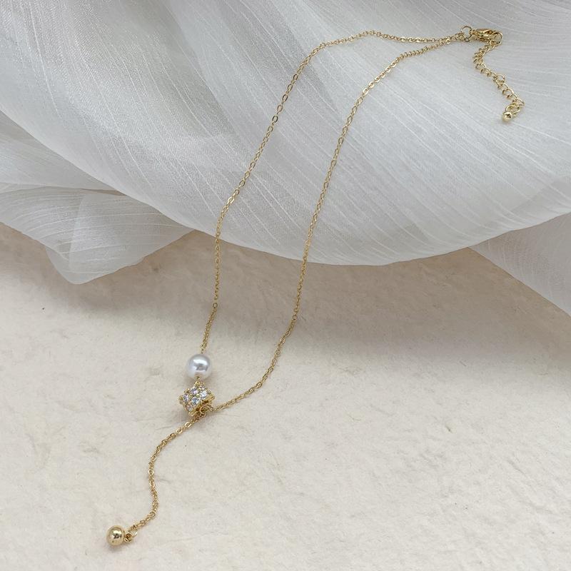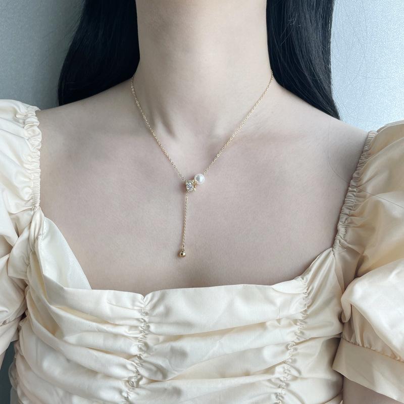 Cadena de clavícula de circonita microincrustada con diseño de nicho de estilo coreano, cuentas sencillas que combinan con todo, exquisita borla con baño de cobre y oro real.