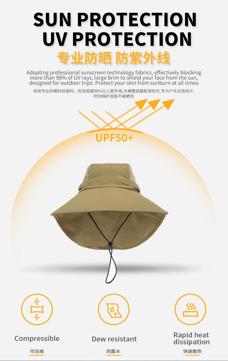 Sombrero de Pescador con Visera Grande para Mujer Protección Solar UV Verano para Exteriores Pesca Impermeable Secado Rápido Sombrero de Montañismo Fino