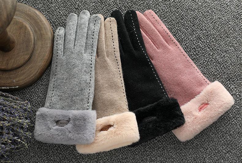 Guantes de Cachemira N302 para Mujer Invierno Cálidos Pantalla Táctil Coreanos Otoño Lana y Forro Polar Coral Punto Dedo Guantes de Mujer