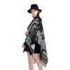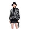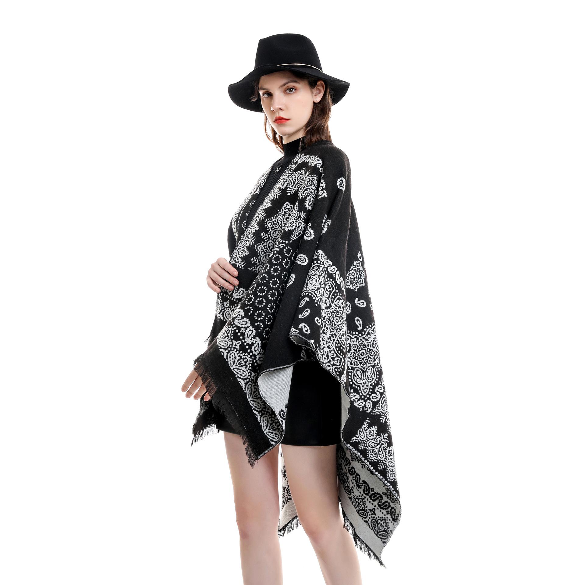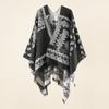• Capa de flecos a cuadros en blanco y negro con chal sencillo de comercio exterior transfronterizo, capa cálida de otoño e invierno, capa de calle europea y americana
