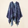 • Capa exterior tipo chal a cuadros europeos y americanos con degradado de Amazon transfronterizo 2024, capa exterior cálida con borlas para otoño e invierno