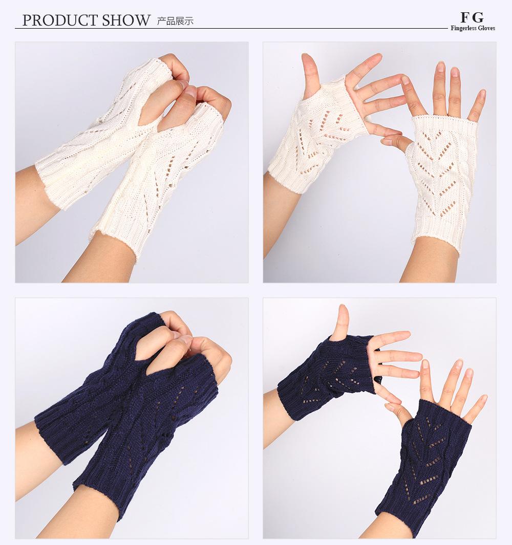 Guantes de lana trenzada transfronteriza, guantes con escote en V, guantes de punto cálidos, guantes de medio dedo europeos y americanos, guantes cálidos para las manos.