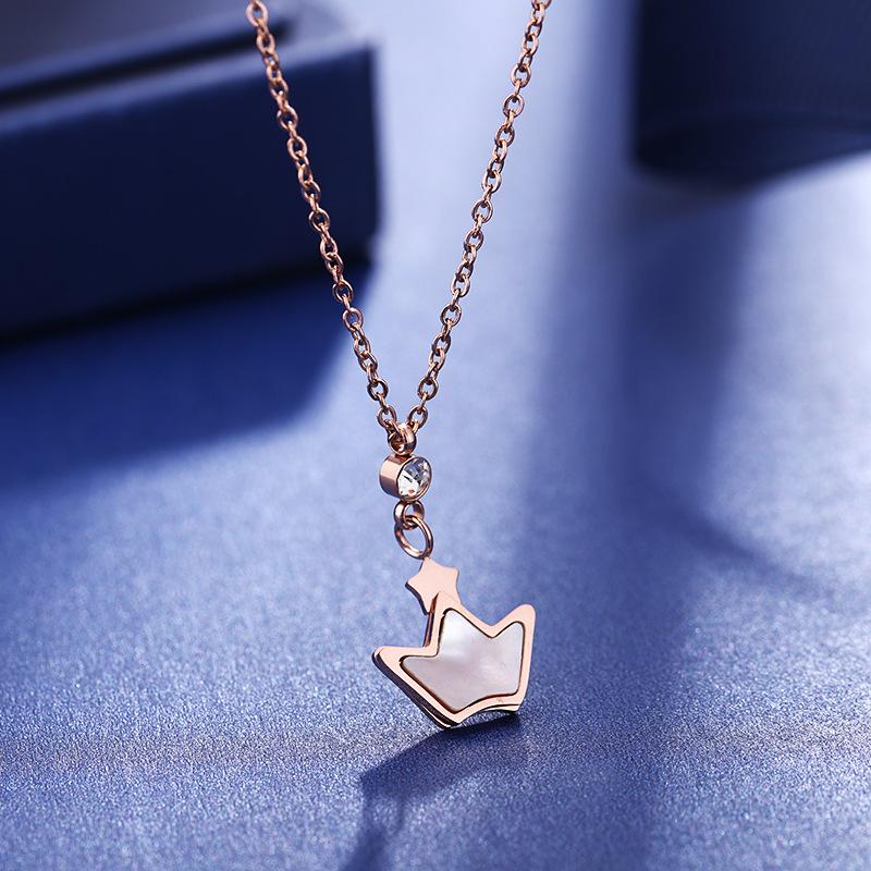 Nuevo y creativo collar de concha dorada y acero de titanio para mujer, cadena de clavícula con corona de concha blanca a la moda, joyería pequeña al por mayor