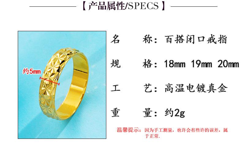 Anillo cerrado de flor de arroz de 5 mm chapado en oro real de 24k anillo de oro vietnamita anillo de pareja chapado en oro latón