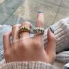 Anillo dorado Corneol de moda, nuevo, estilo francés, sencillo, para niña, anillo para el dedo índice, joyería urbana de moda.
