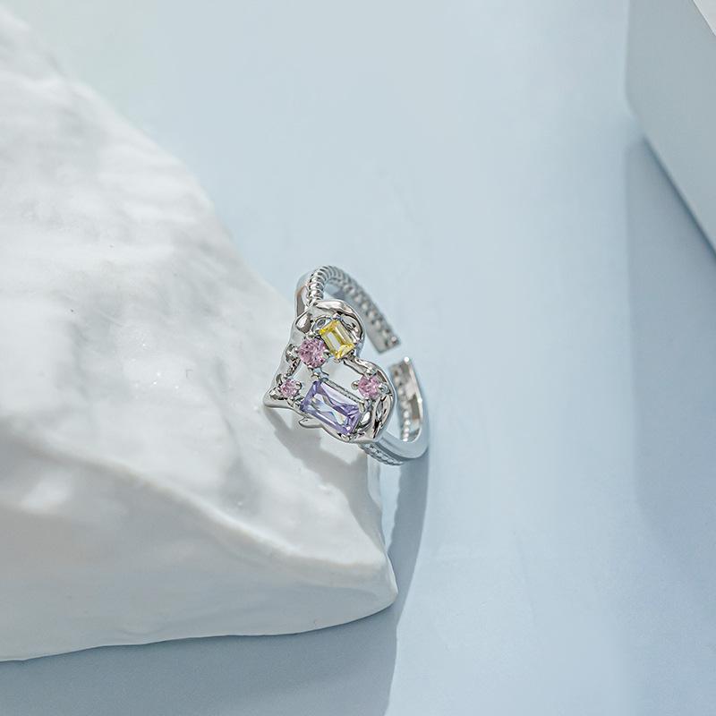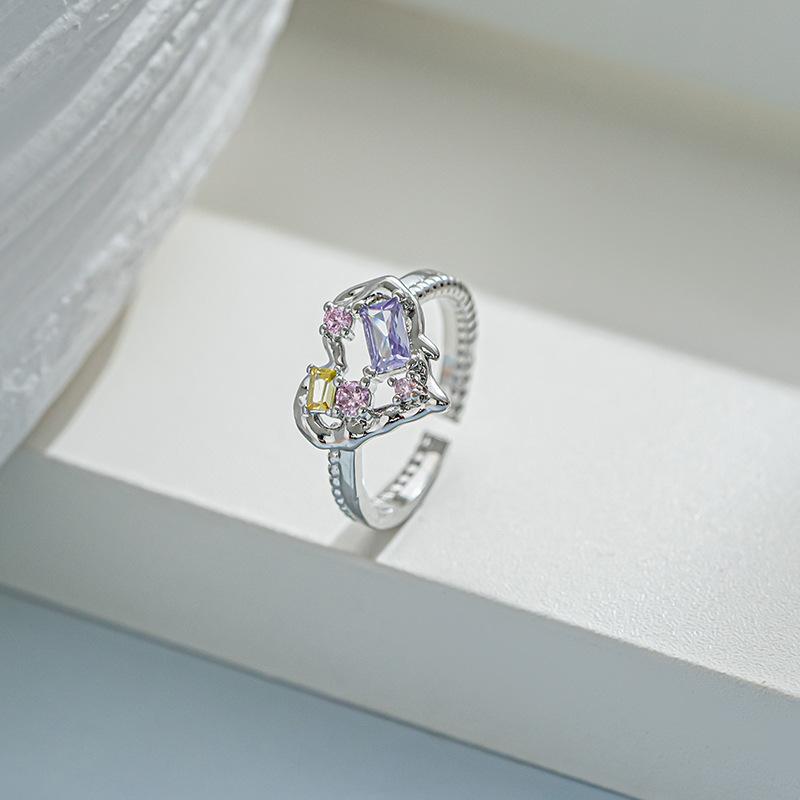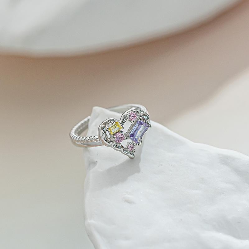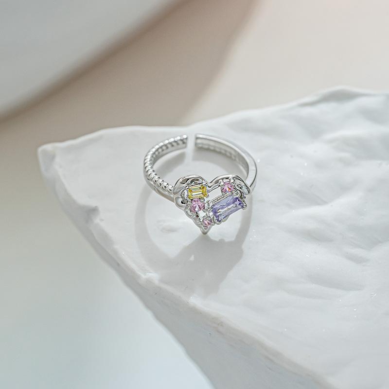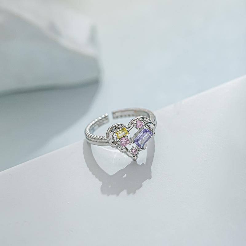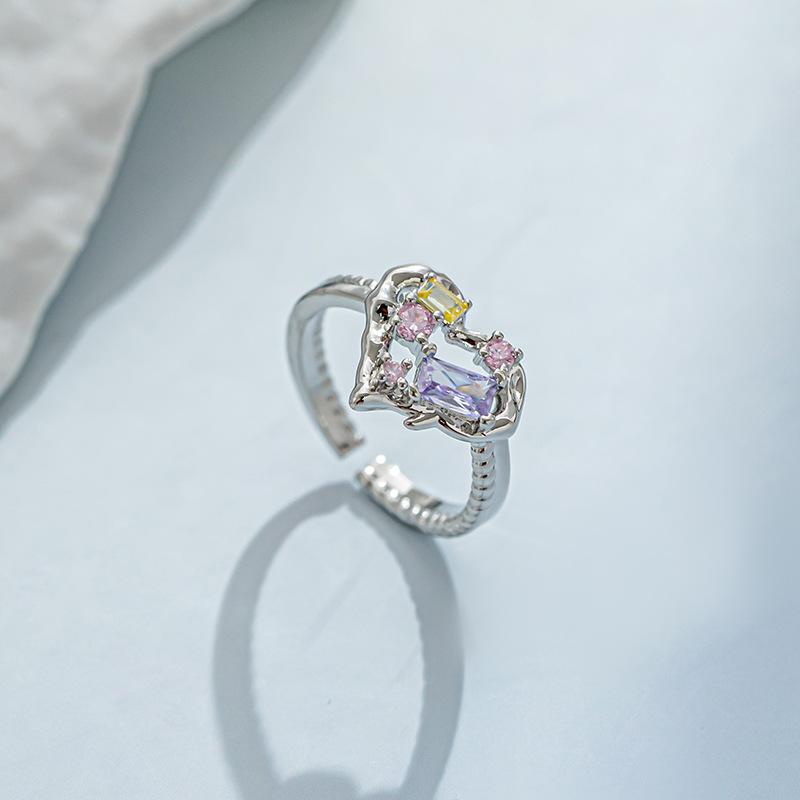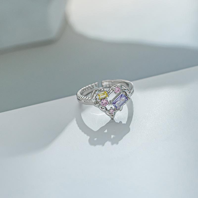 Anillo de Pareja de Apertura Ajustable de Diamante de Color Súper Flash Femenino Nicho de Lujo Accesible de Alta Gama Versátil No se Desvanece Anillo de Boca Viva
