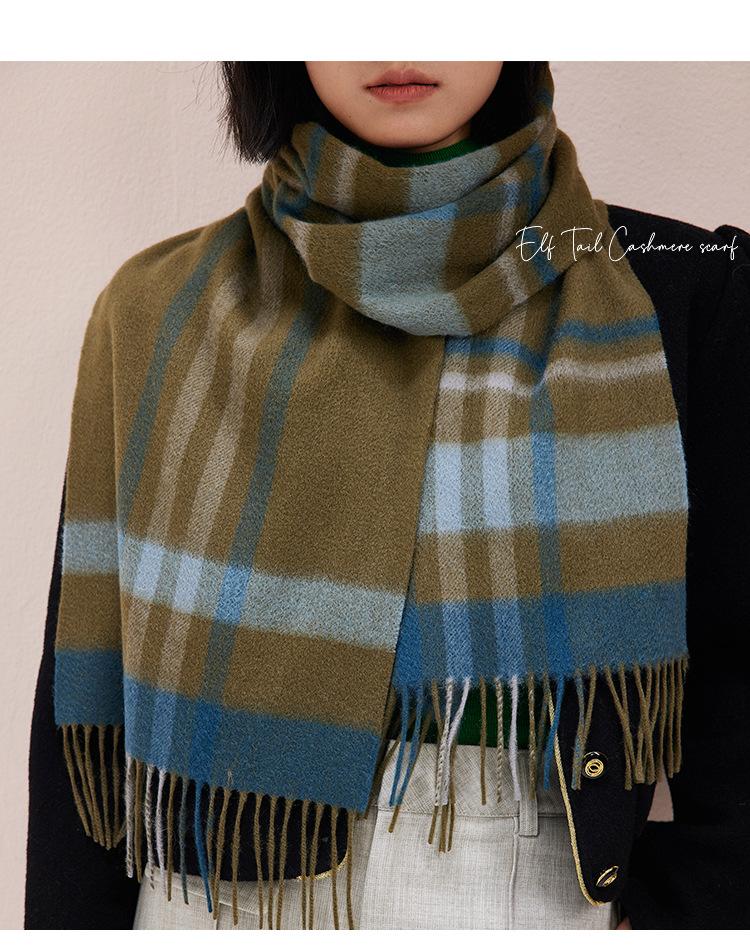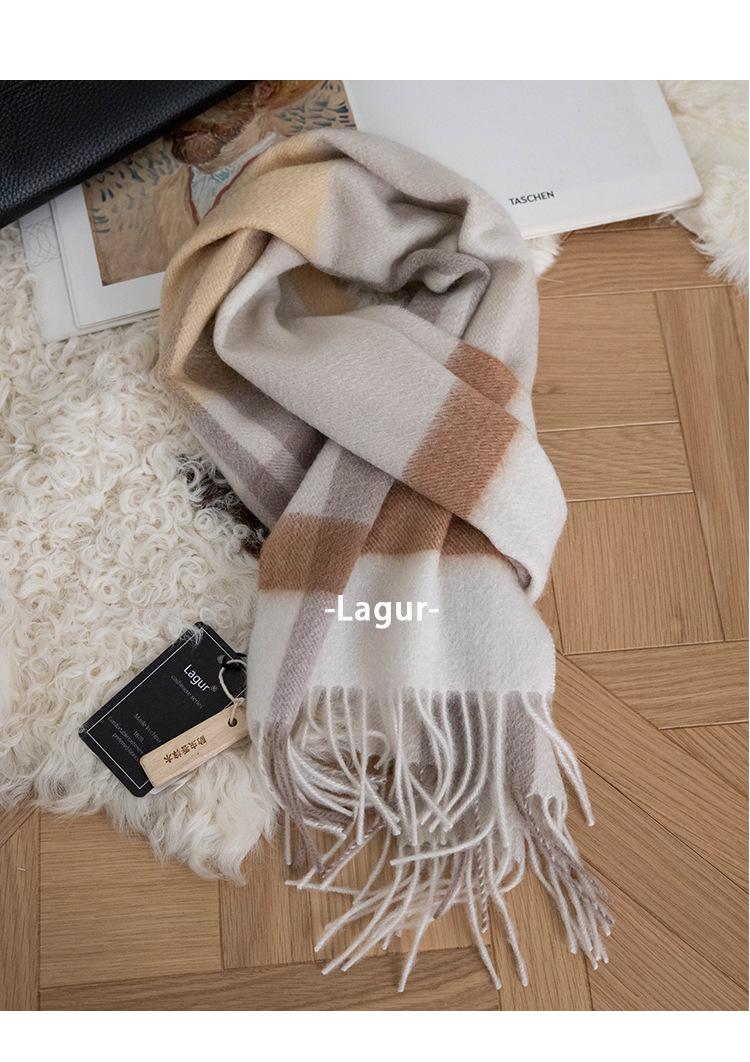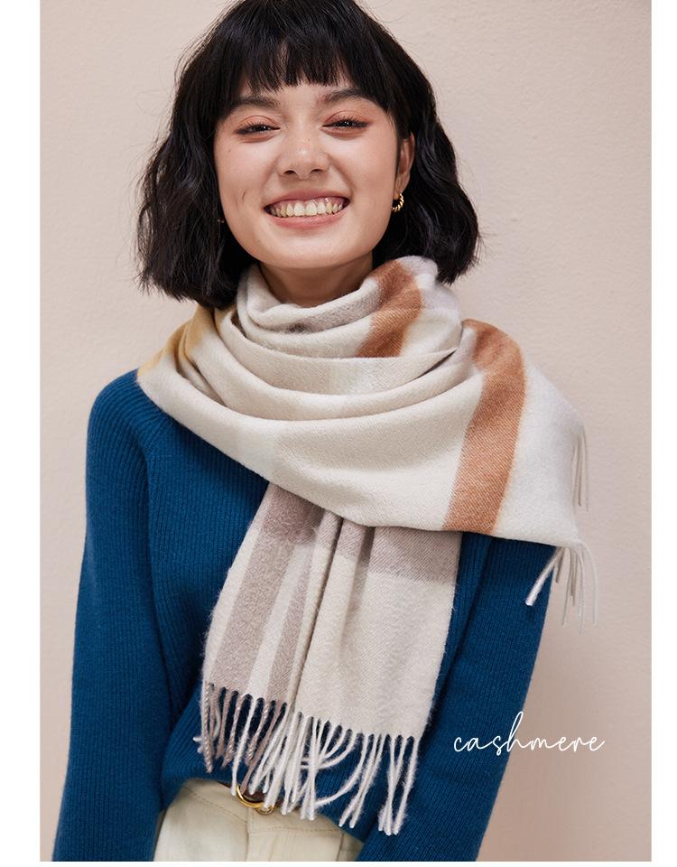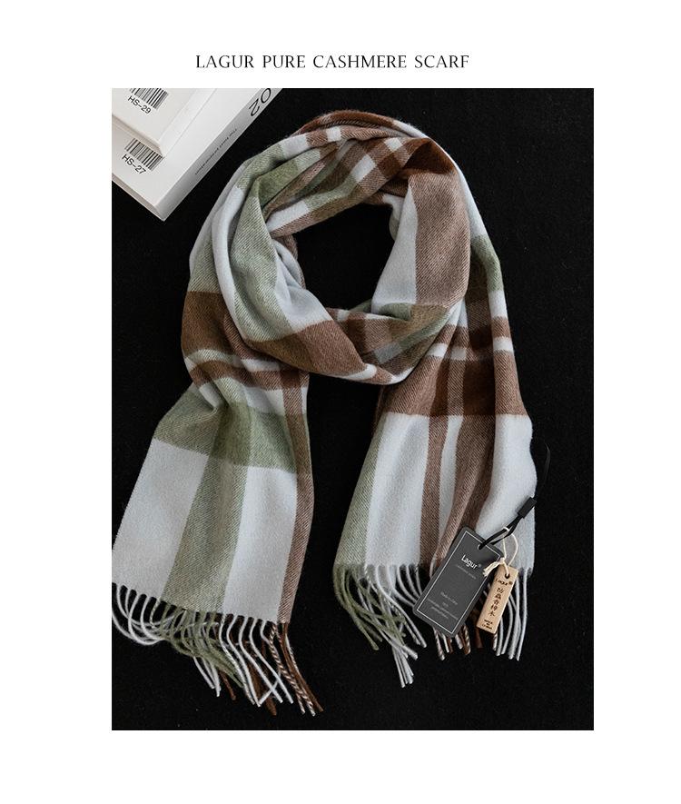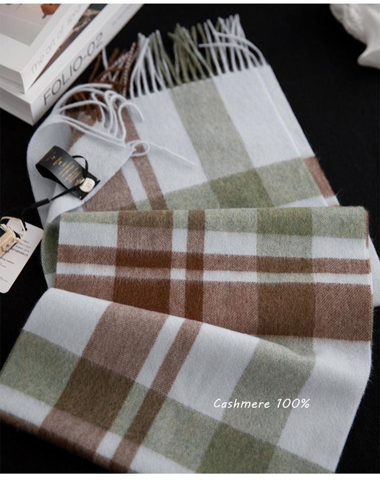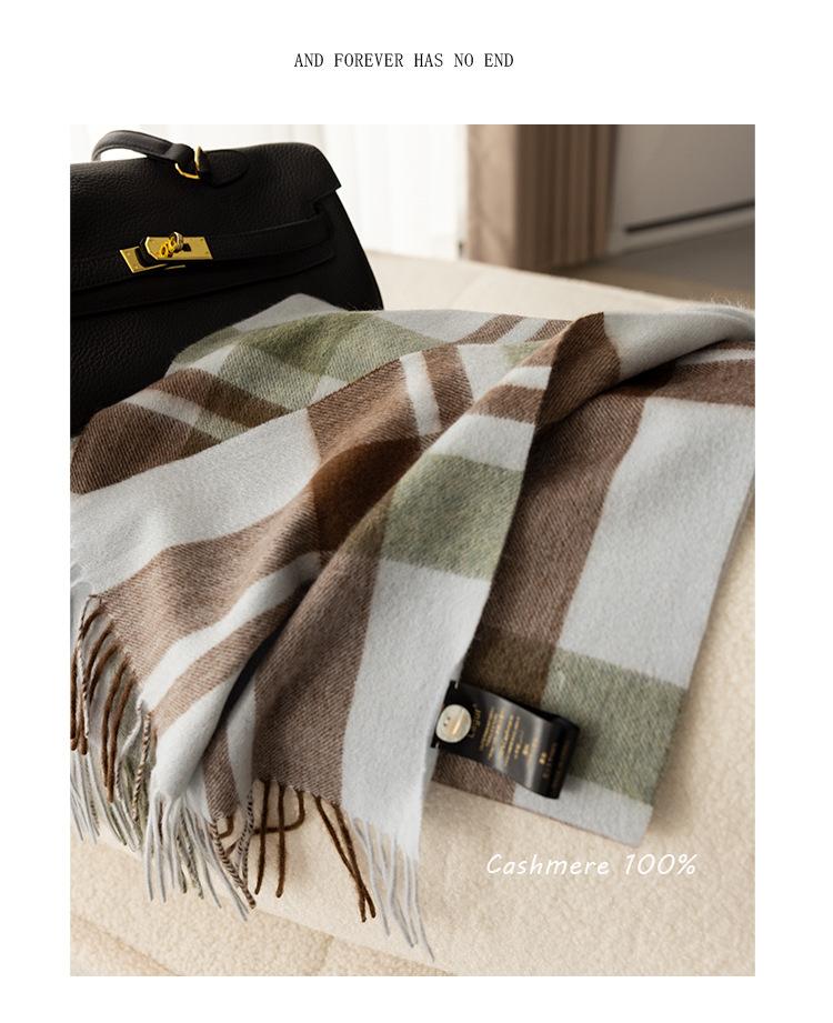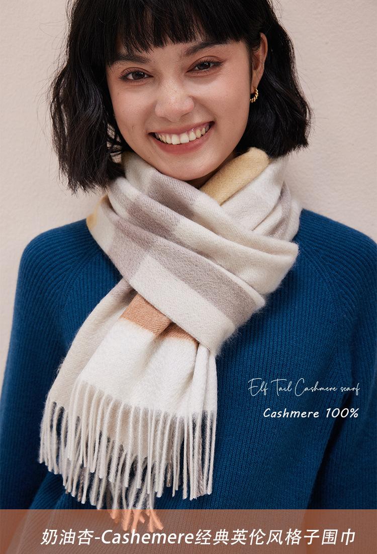 Bufanda de cachemira pura suave color crema albaricoque-cachemira para mujer invierno tartán escocés de alta calidad para hombre