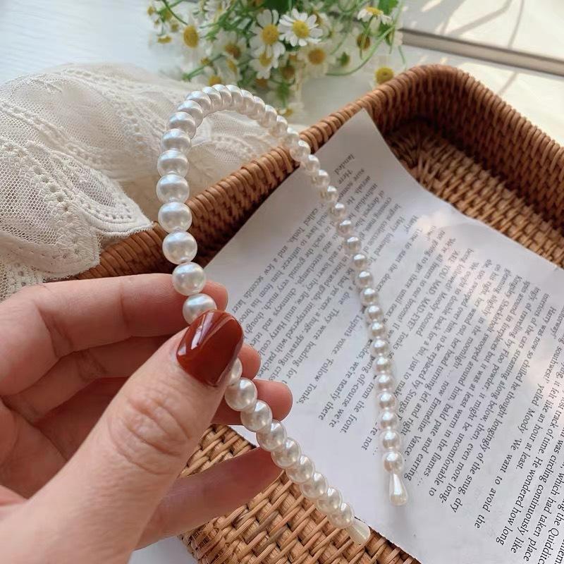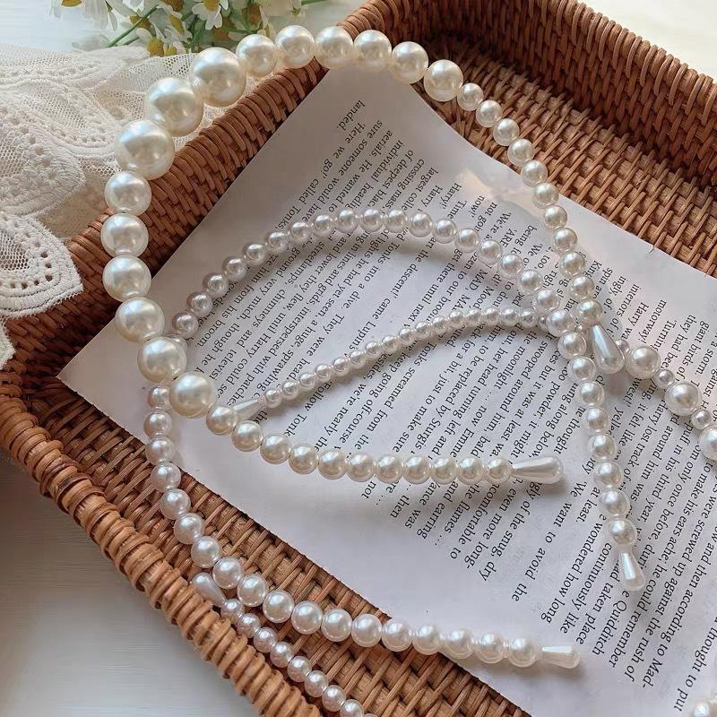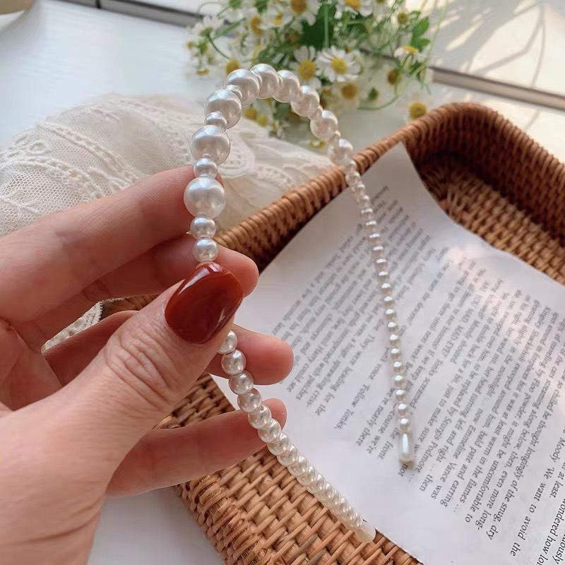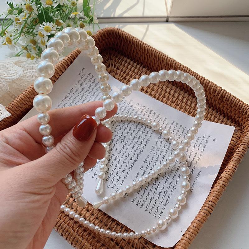 Diadema de perlas japonesa y coreana ~ Diadema de cabello prensado de temperamento simple Accesorios para el cabello Tocado francés dulce coreano Corazón de niña