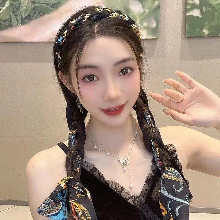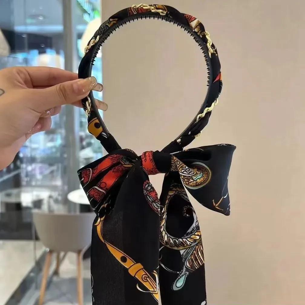 Diadema de cadena vintage de corte de satén horquilla banda para el cabello femenina verano bufanda de seda cinta lazo para el cabello diadema de una pieza