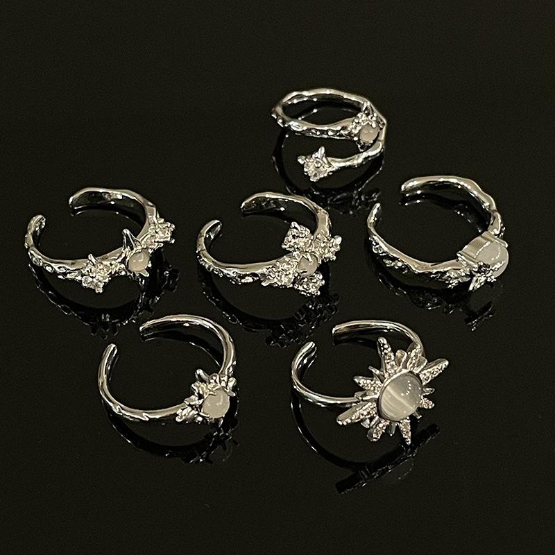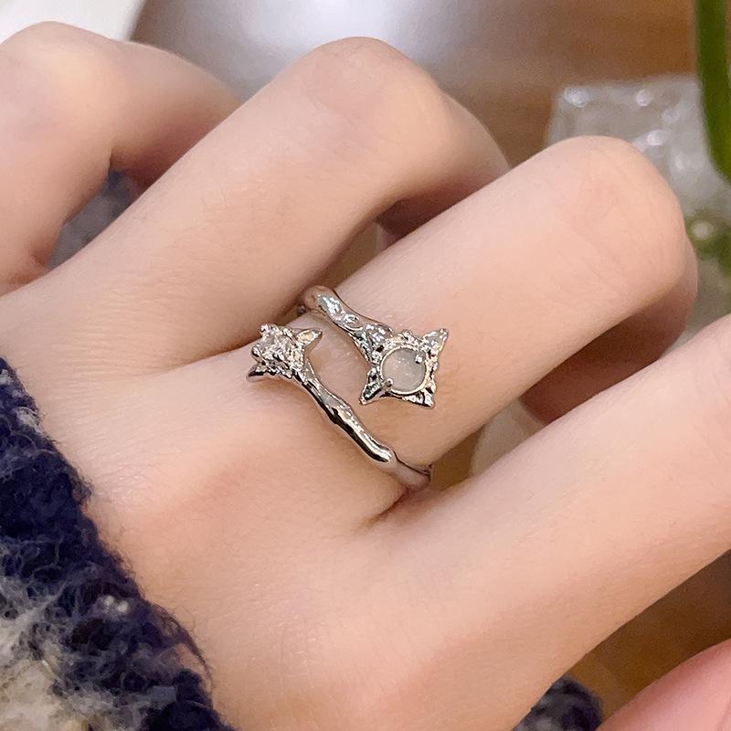 Anillo de dedo índice abierto con diseño de nicho de mariposa de piedra lunar de lujo ligero de alta calidad de la serie Butterfly QI