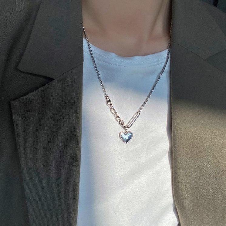 Collar de amor japonés y coreano para mujer, estilo hip-hop, punk, de acero de titanio, sin color, estilo europeo y americano.