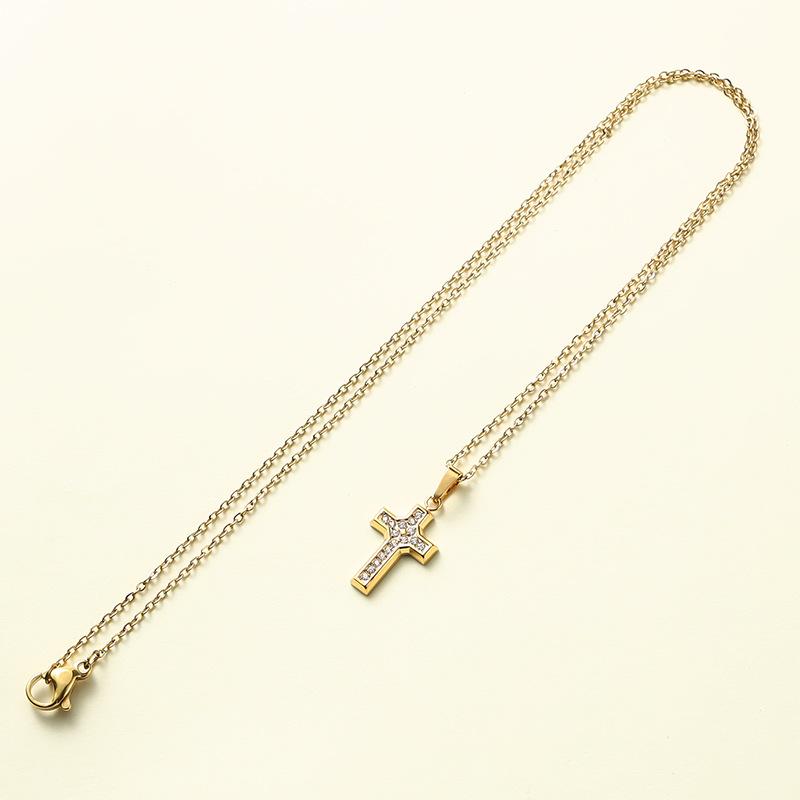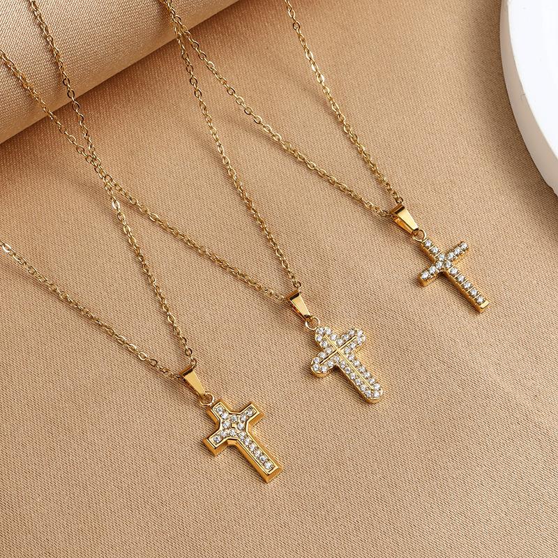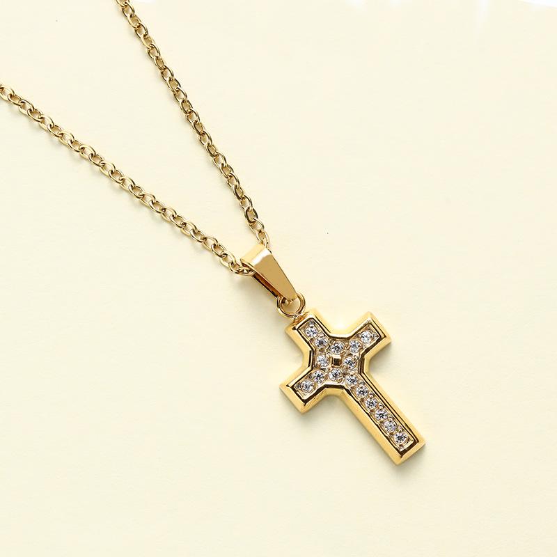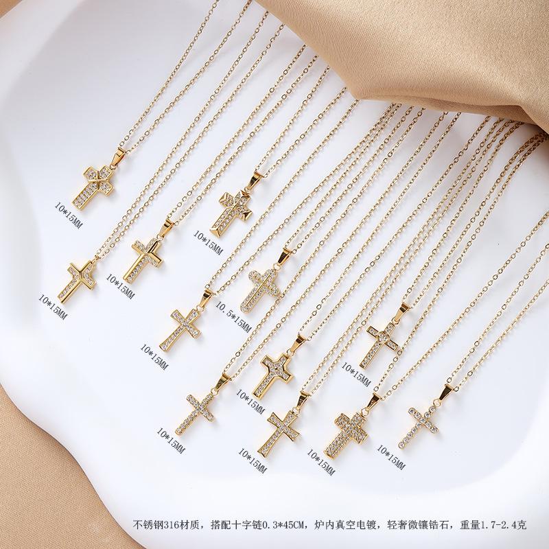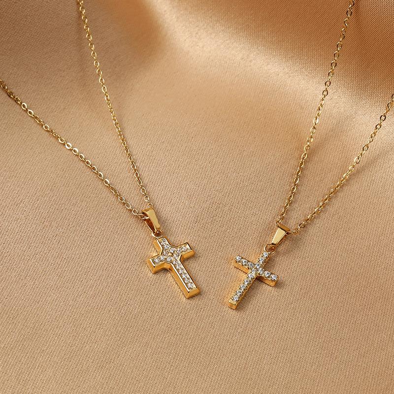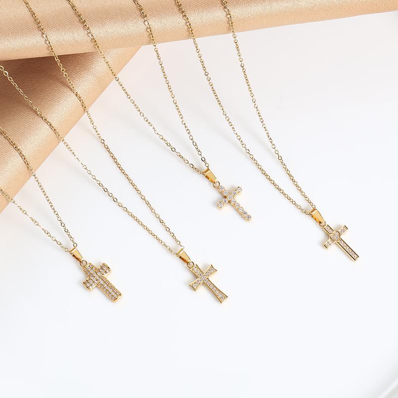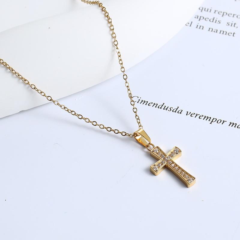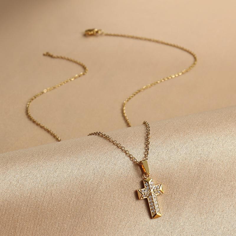 El Gerente de la Tienda Recomienda Collar con Colgante de Cruz Pequeña de Acero Inoxidable de Lujo Ligero con Micro-Incrustaciones de Zirconio, Cadena de Ágata, Collar de Clavícula de Acero Titanio para Mujeres