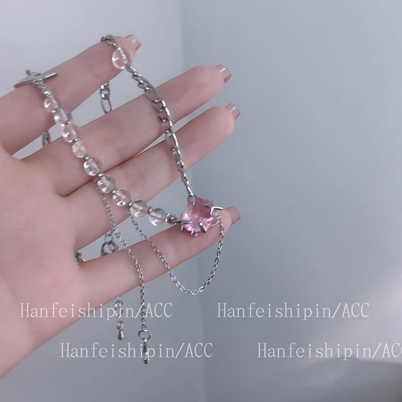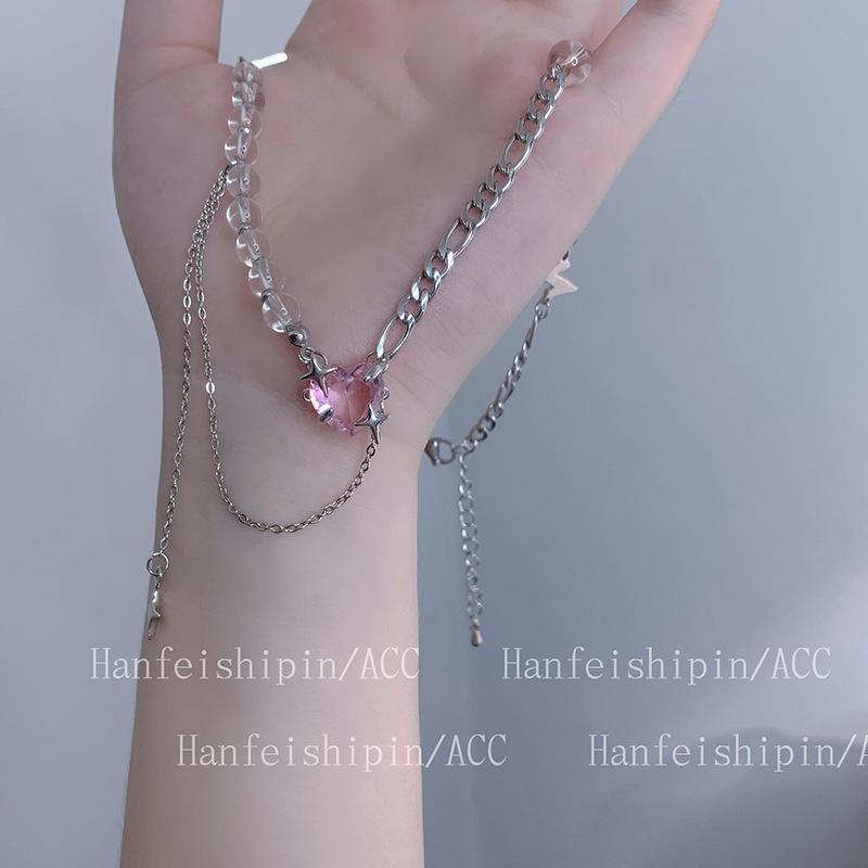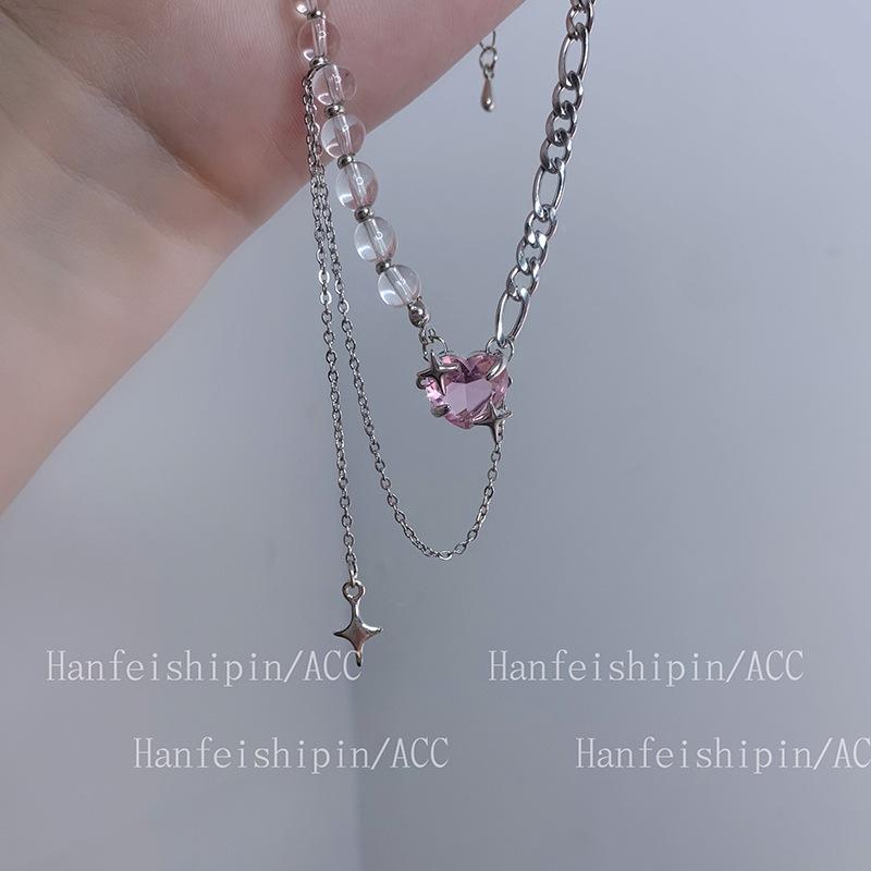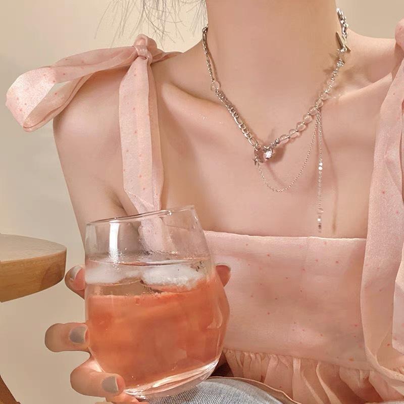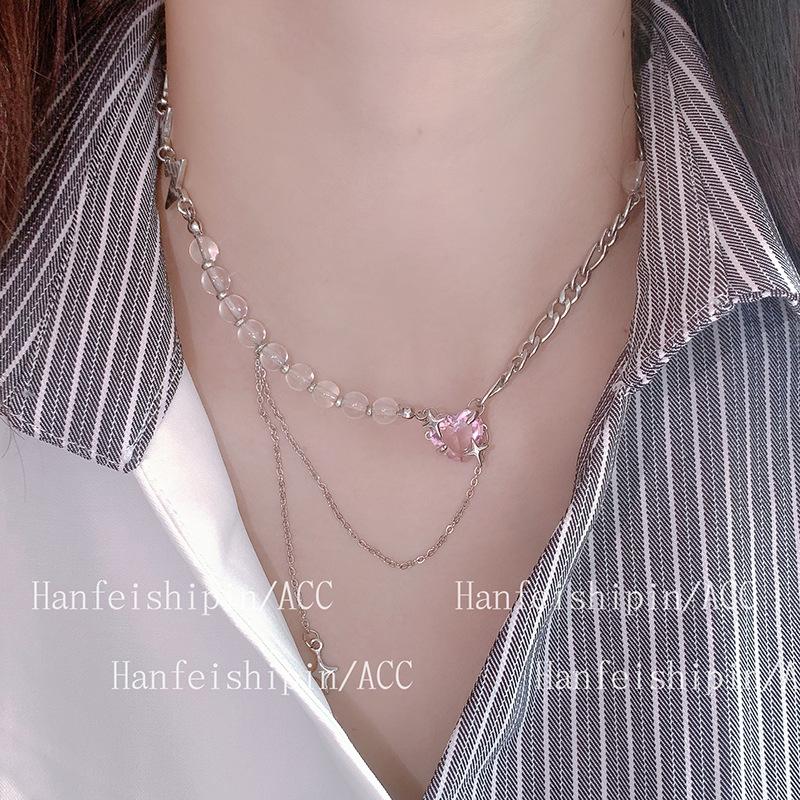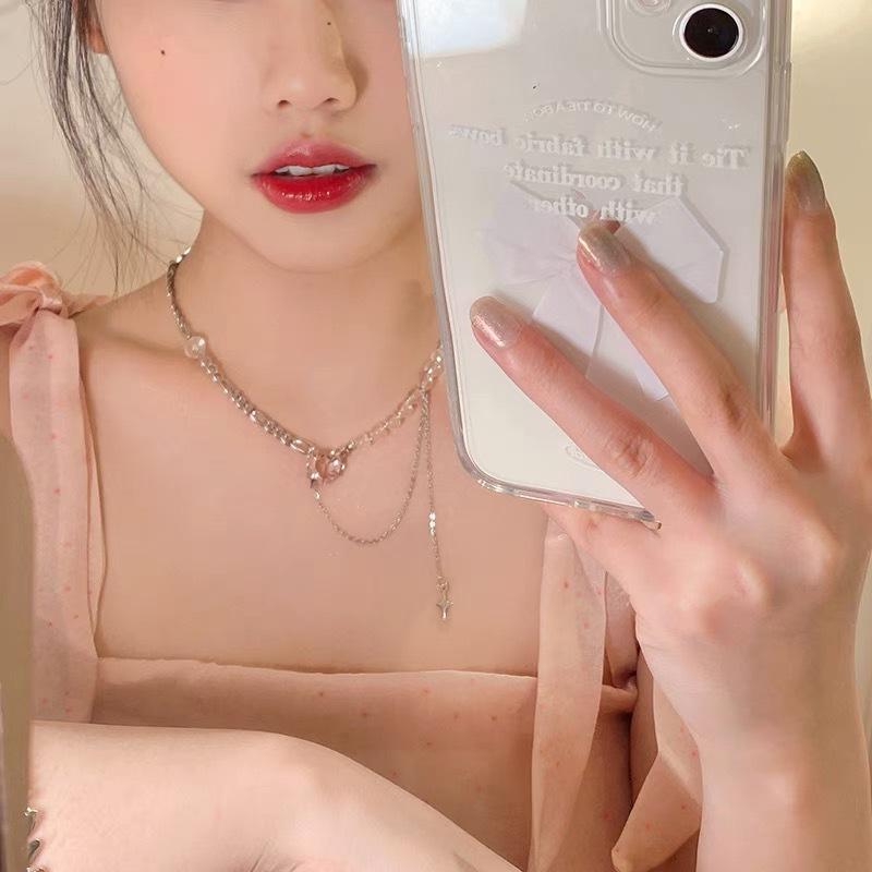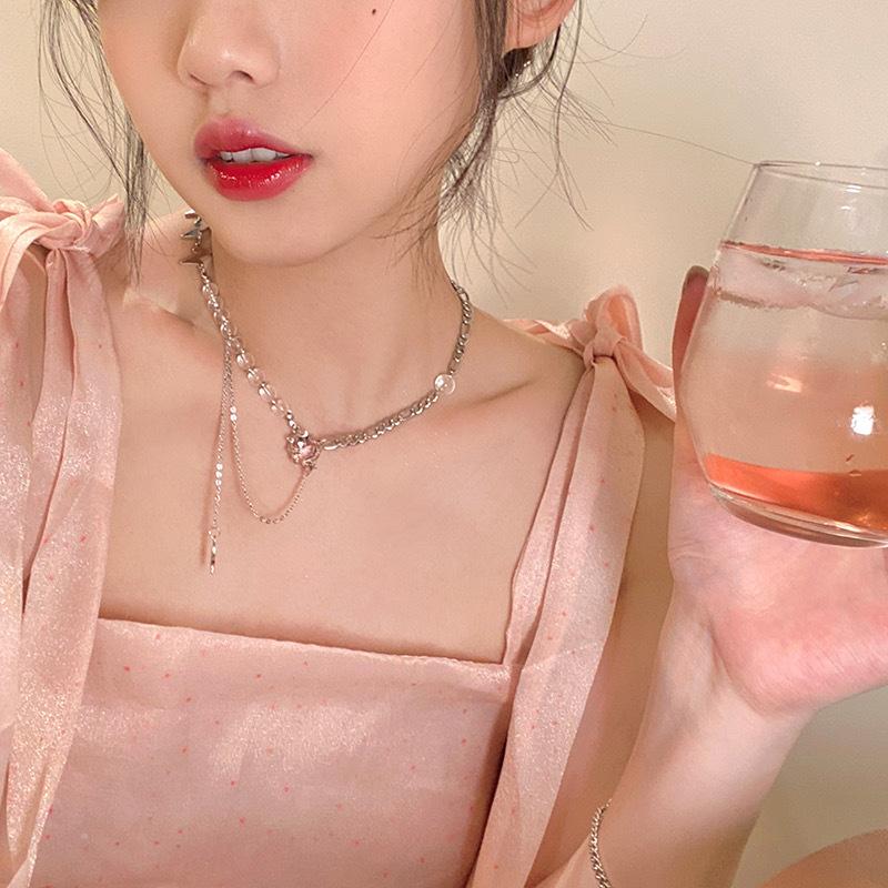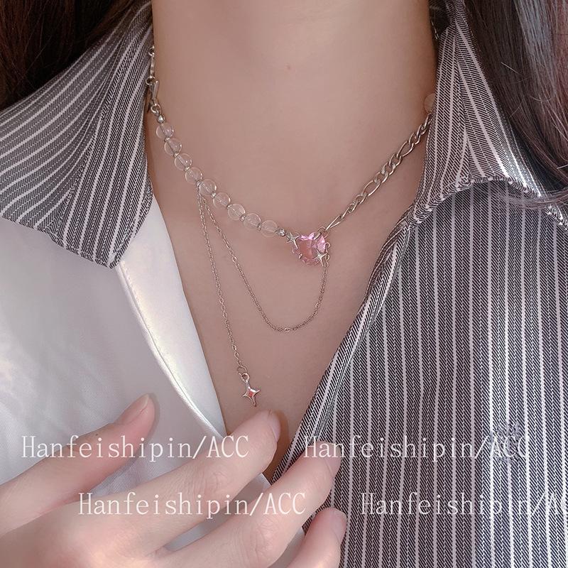 Nuevo Collar Rosa de Amor con Costuras para Mujer Diseño de Alto Nivel Nicho Borla de Rayo con Cuentas Cadena Clavicular Collar Cadena