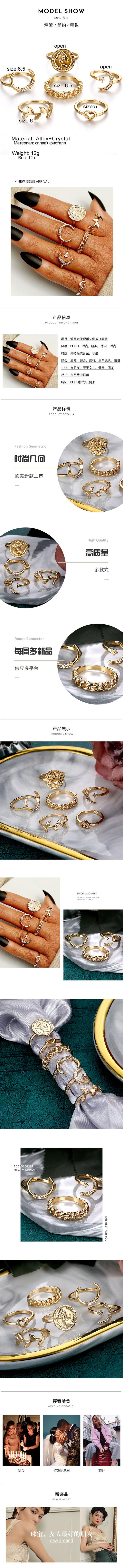Mushang Transfronterizo Nueva Moneda Hoja Creciente Conjunto de Anillos de Unión de 6 Piezas Retro Ins Joyería Ms026