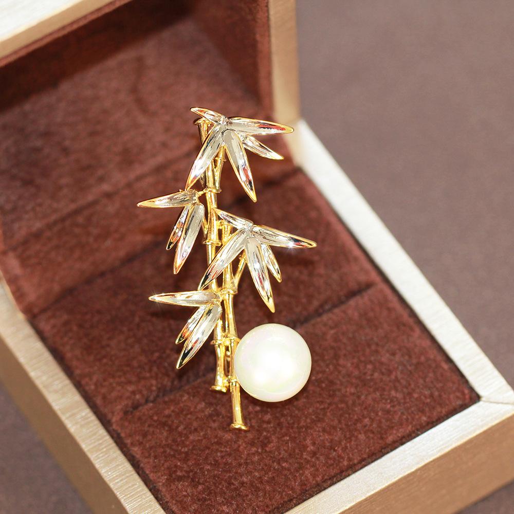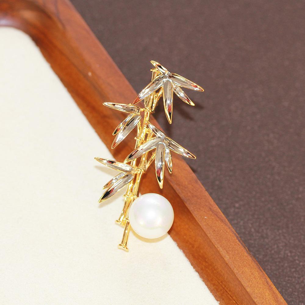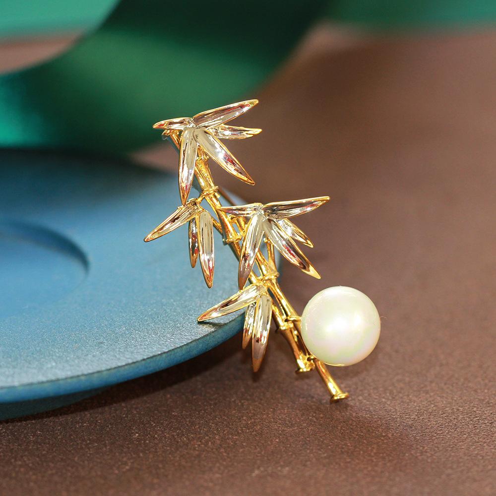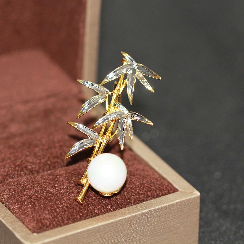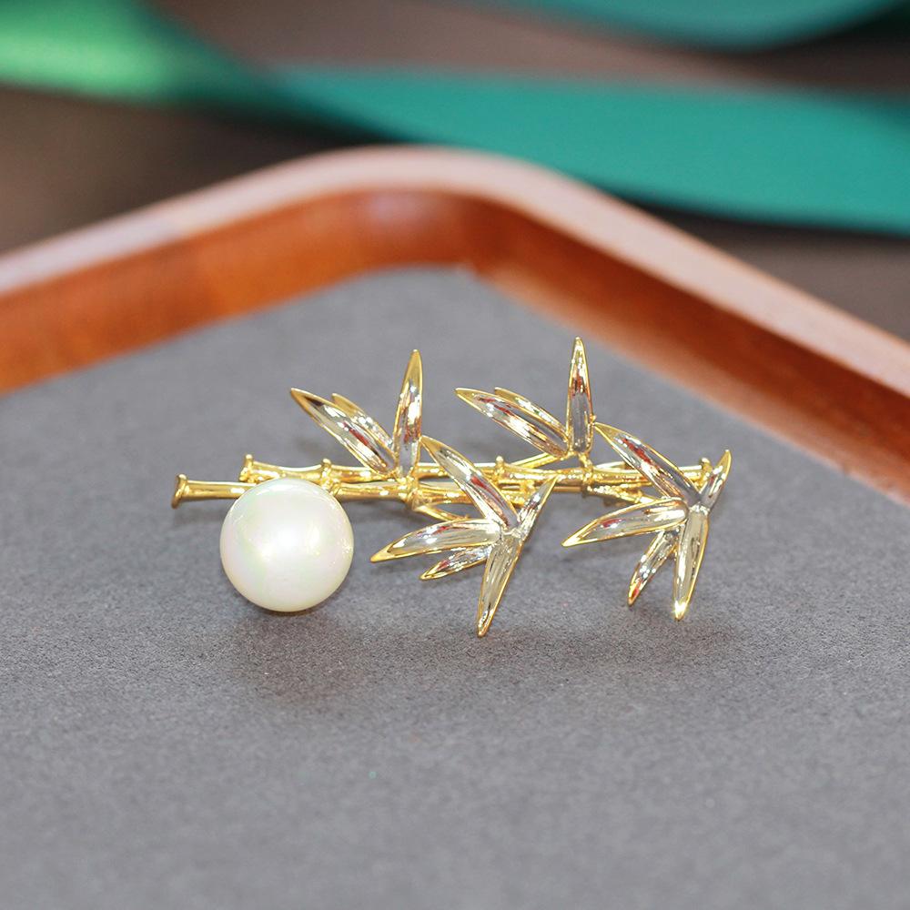 Broche de bambú simple bicolor chapado en oro estilo chino atmosférico planta pin antiluz generación de cabello para mujer