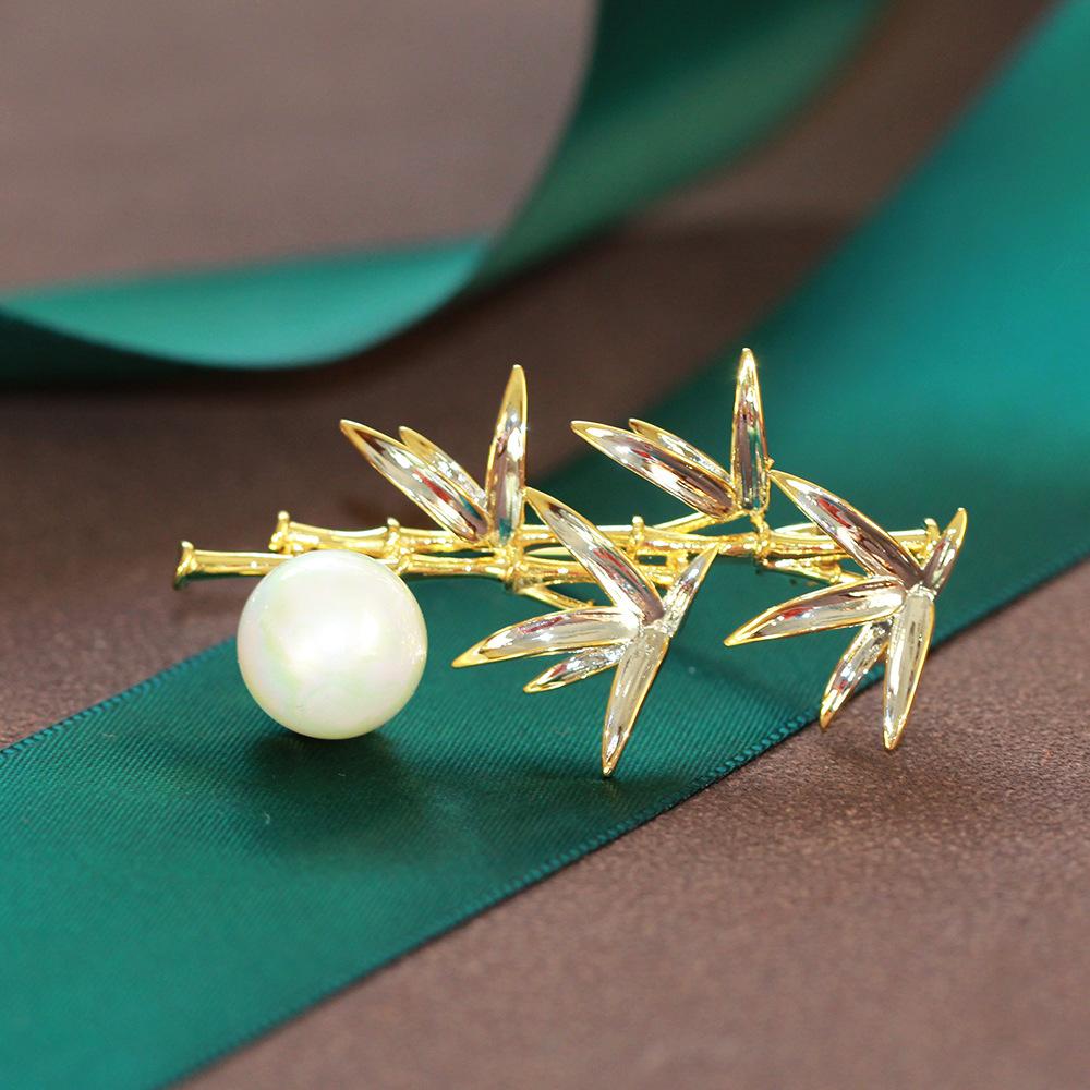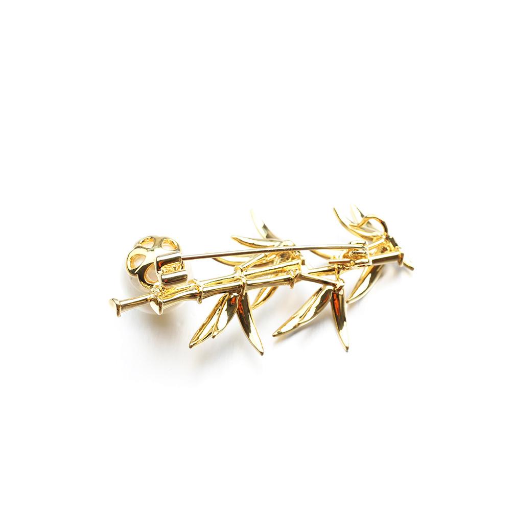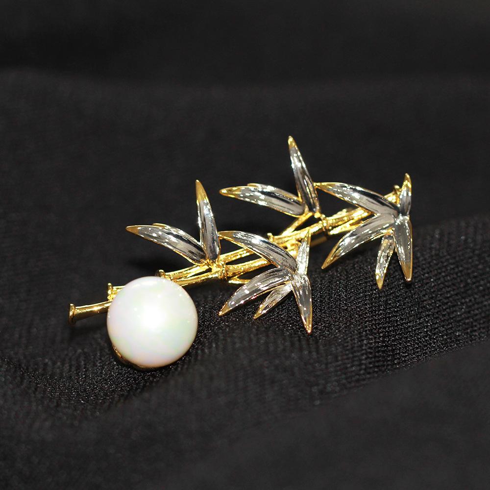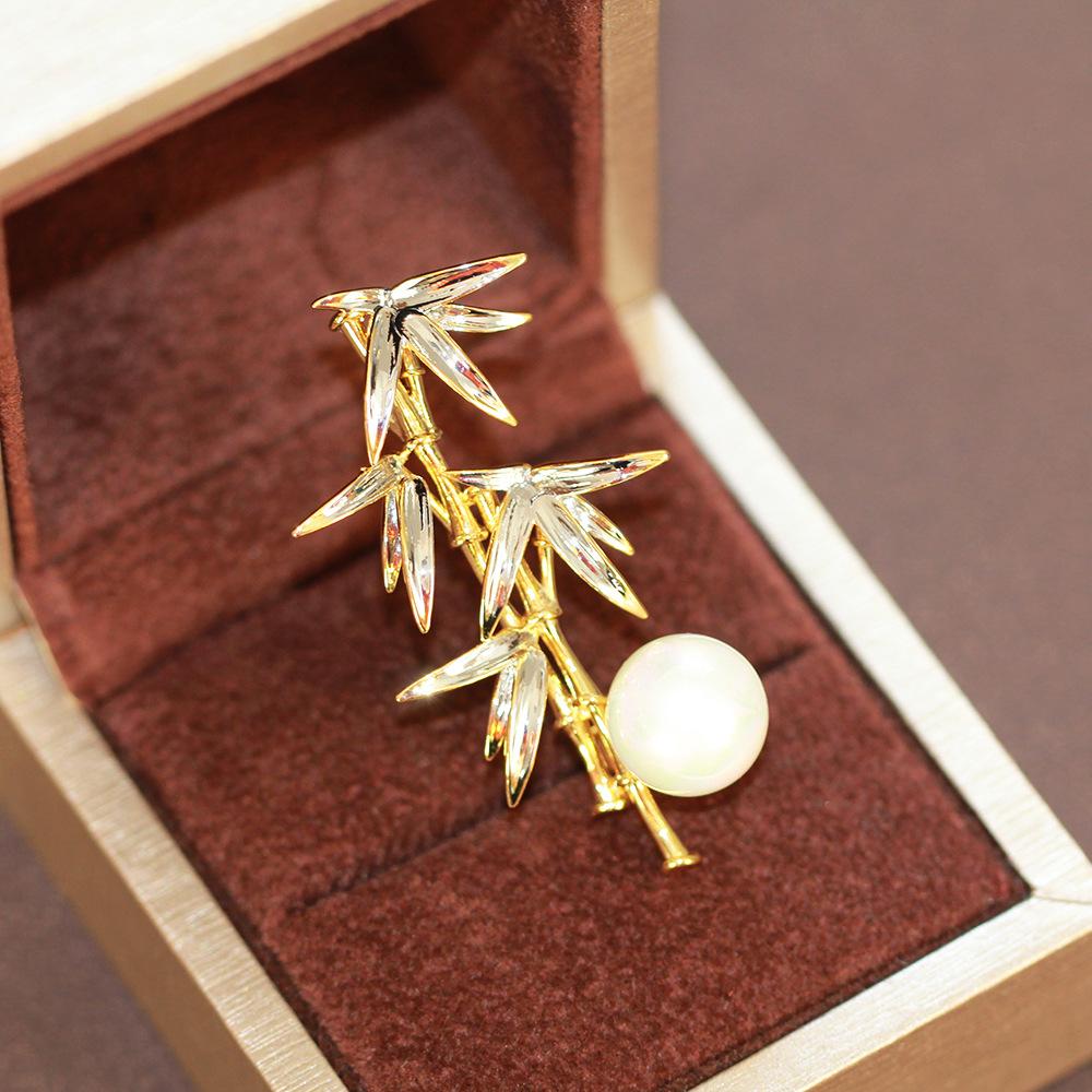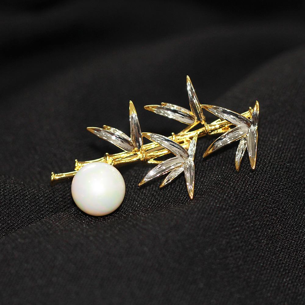 Broche de bambú simple bicolor chapado en oro estilo chino atmosférico planta pin antiluz generación de cabello para mujer