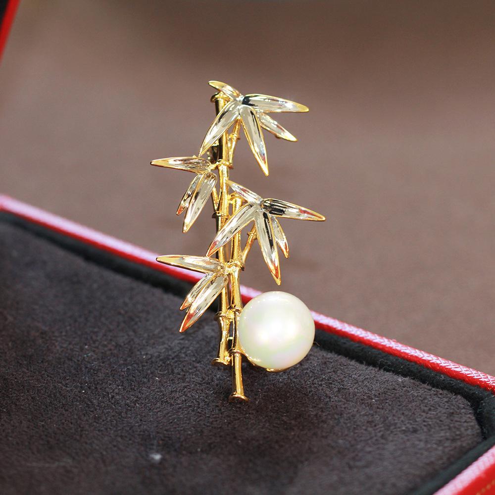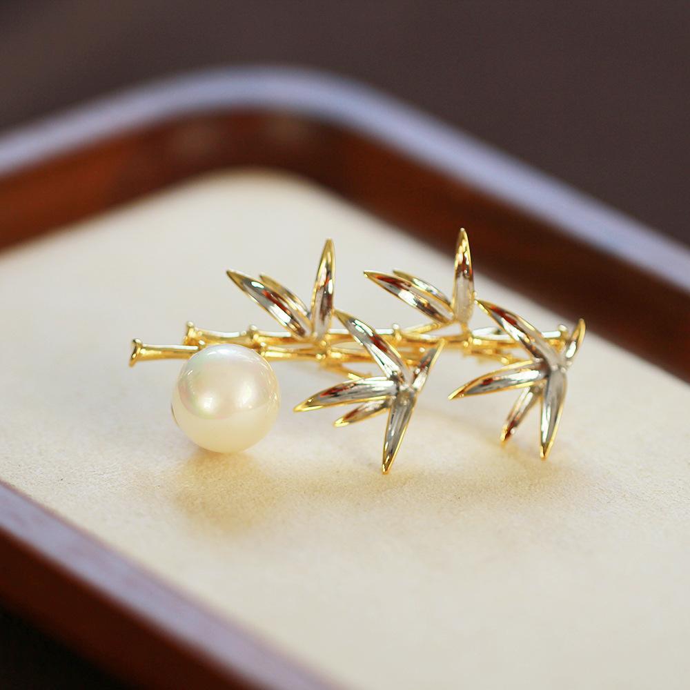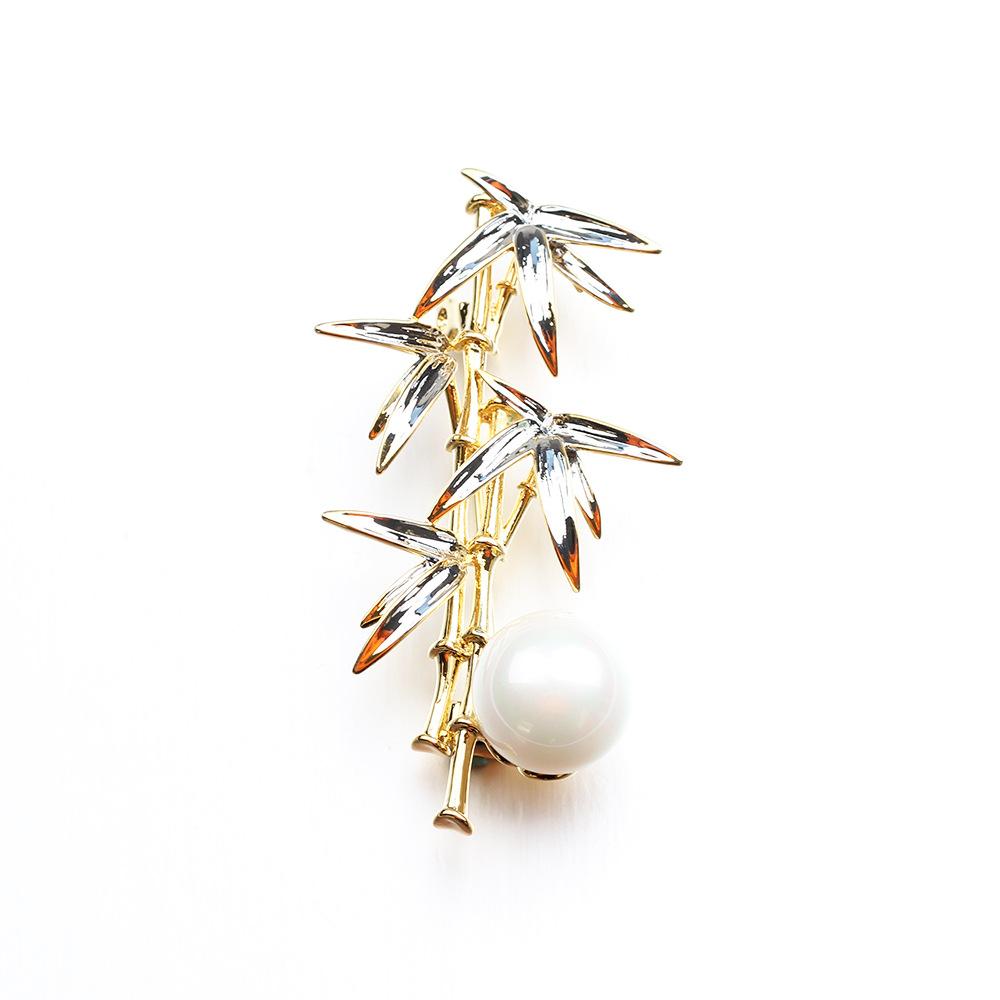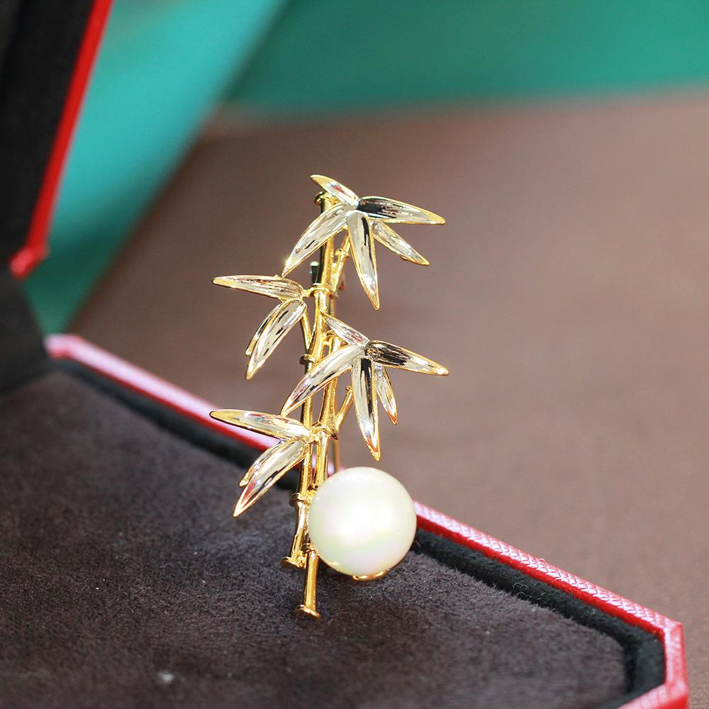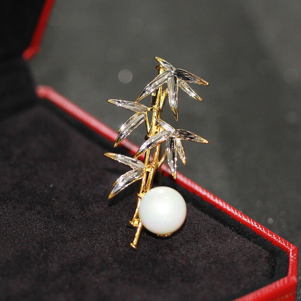 Broche de bambú simple bicolor chapado en oro estilo chino atmosférico planta pin antiluz generación de cabello para mujer