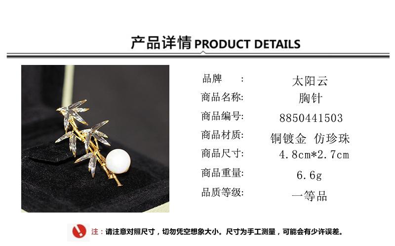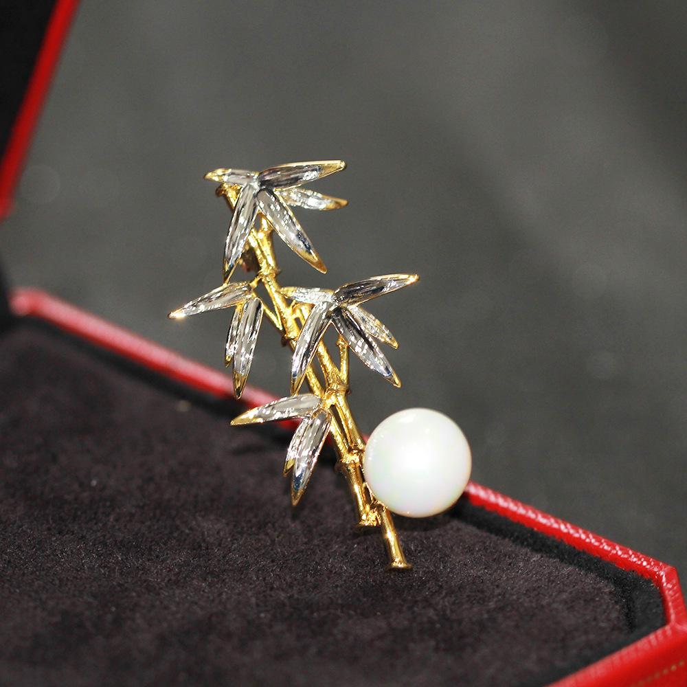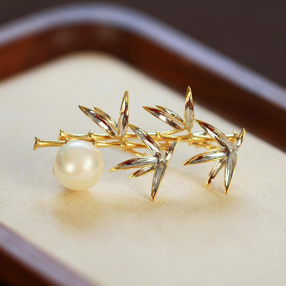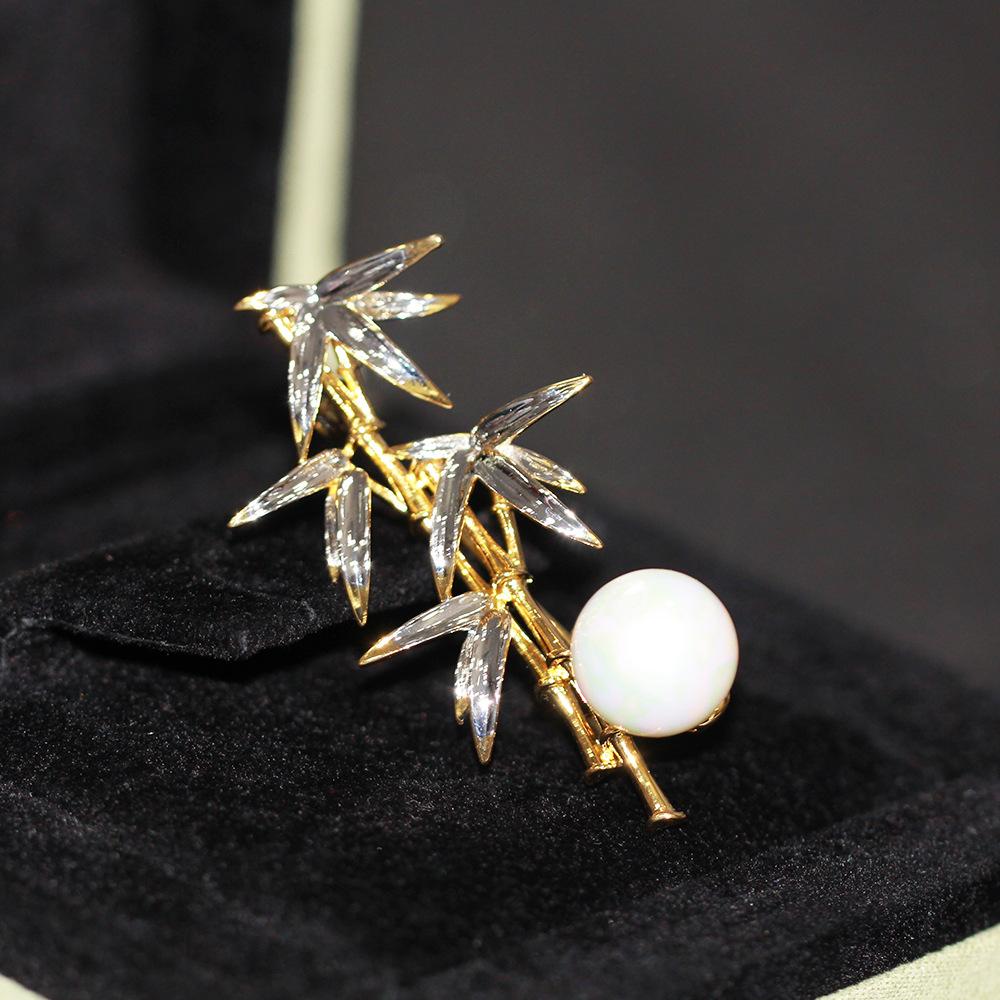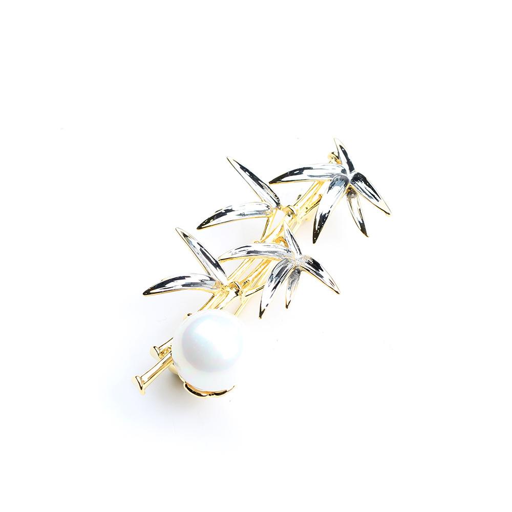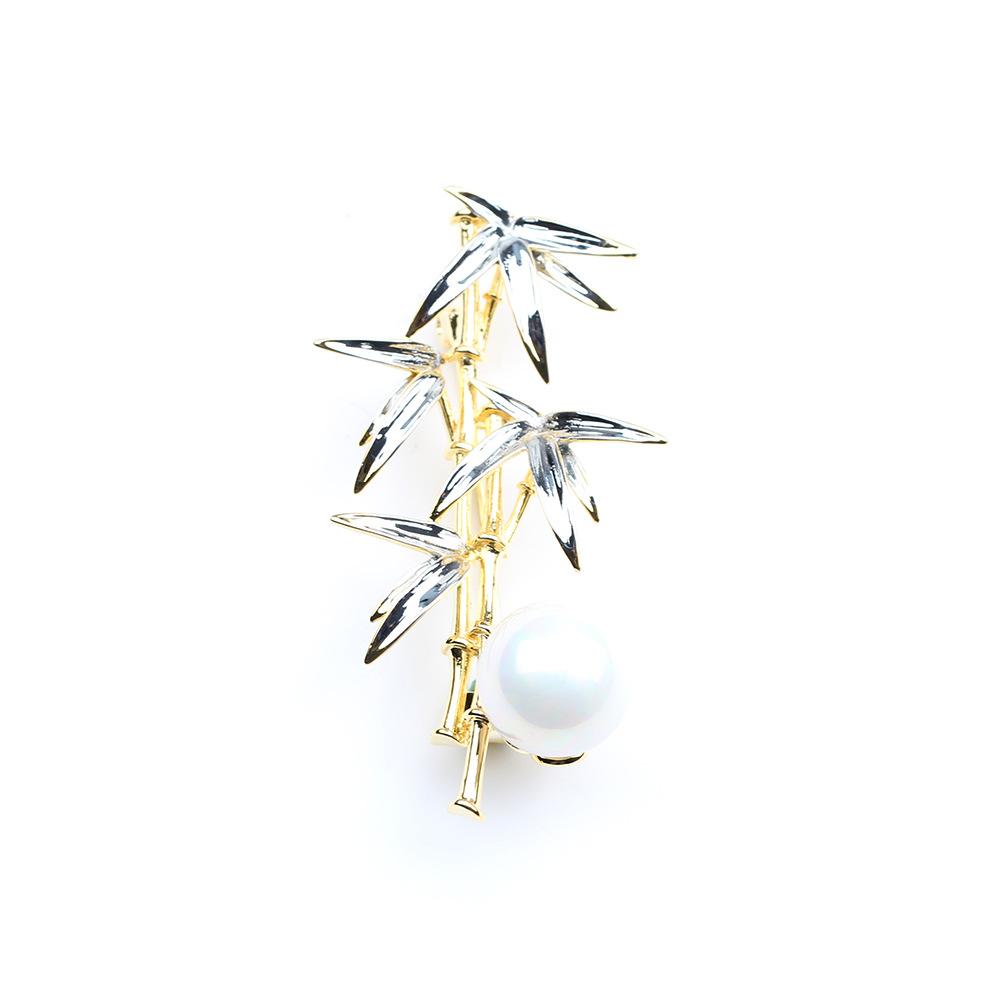 Broche de bambú simple bicolor chapado en oro estilo chino atmosférico planta pin antiluz generación de cabello para mujer