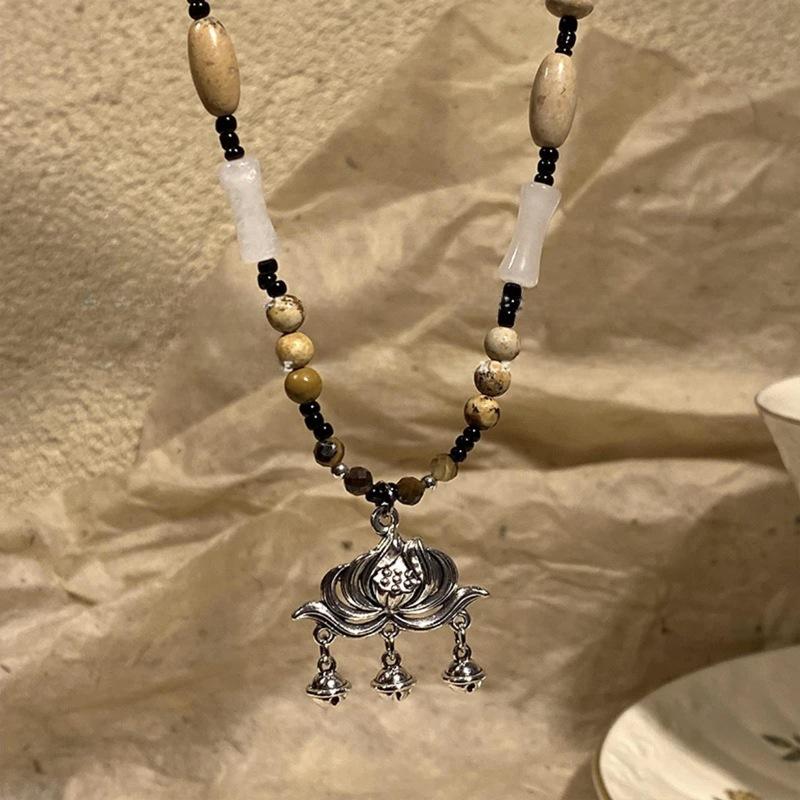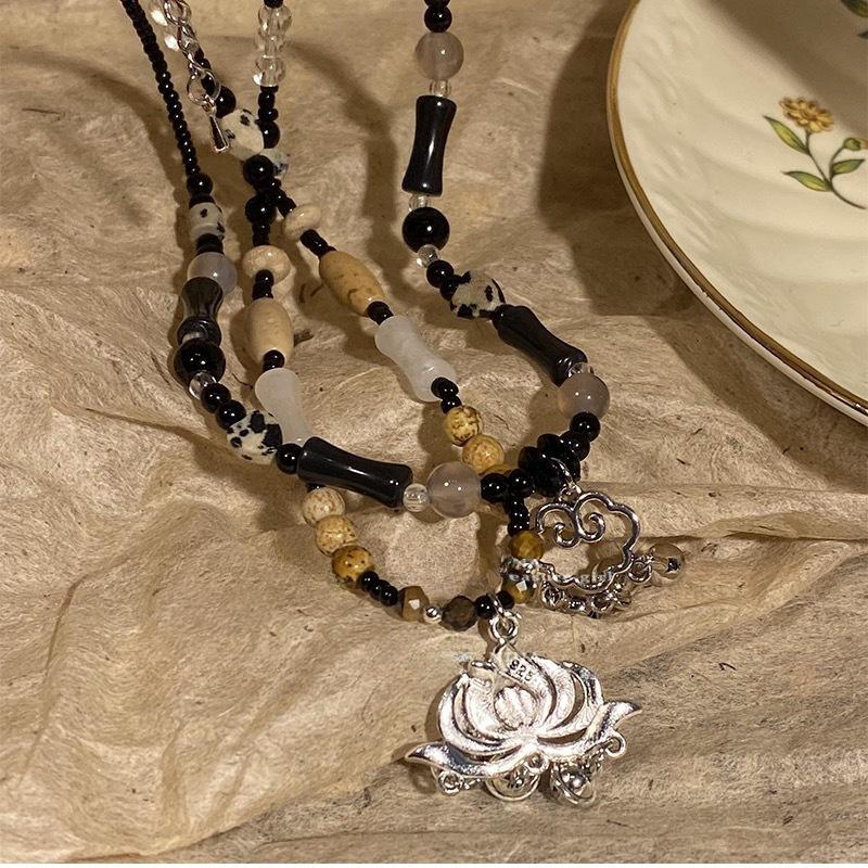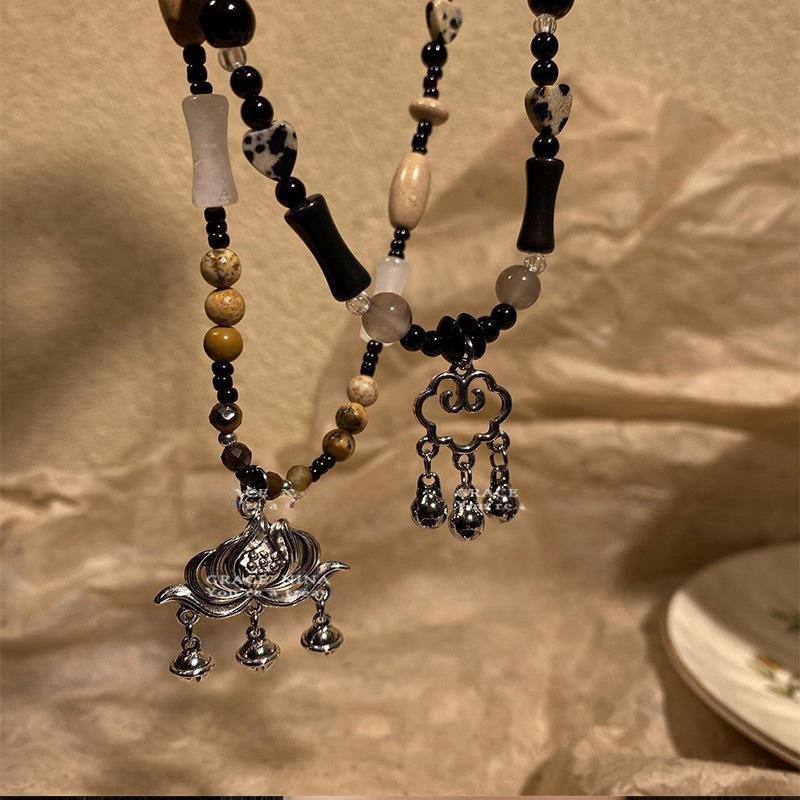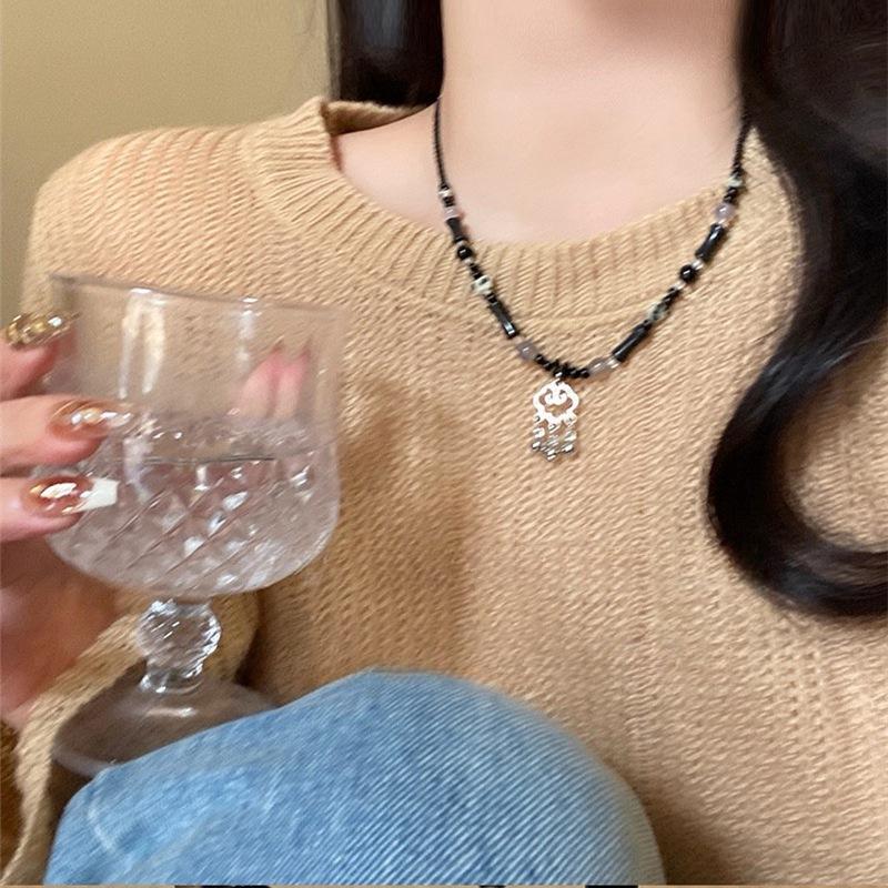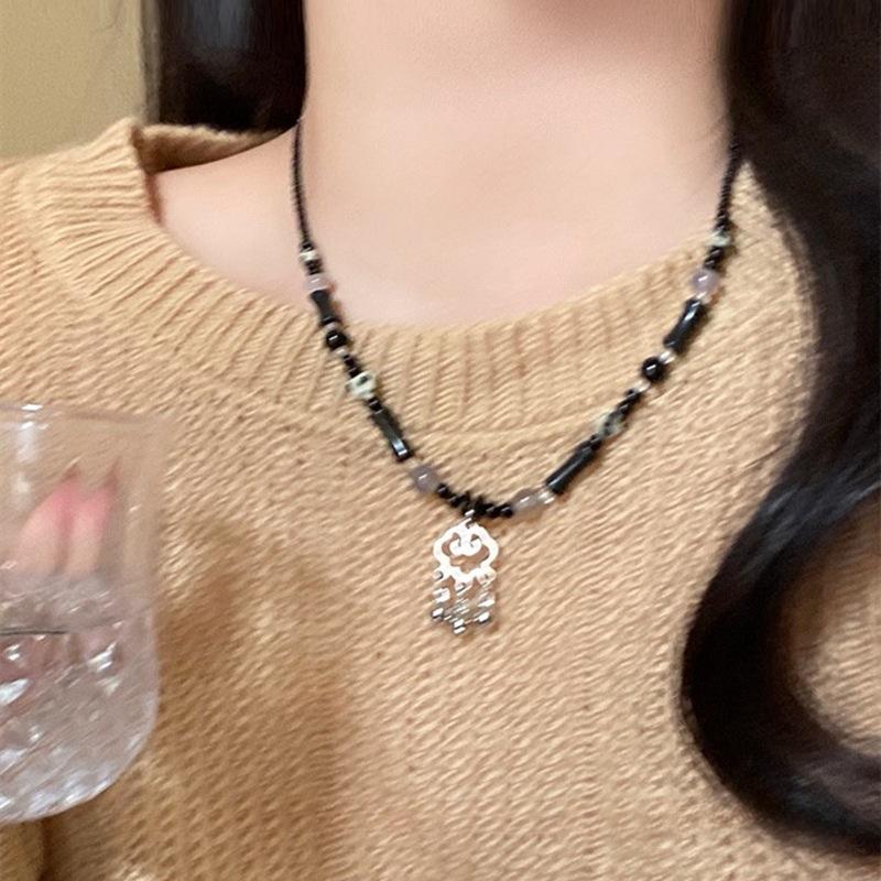 Collar con cierre de seguridad de tres piezas estilo étnico retro para mujer, cadena de clavícula con cuentas, diseño de nicho de lujo ligero, novedad de 2023