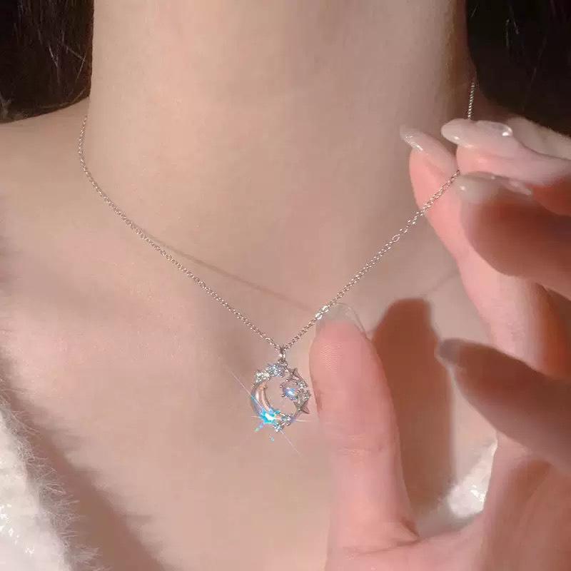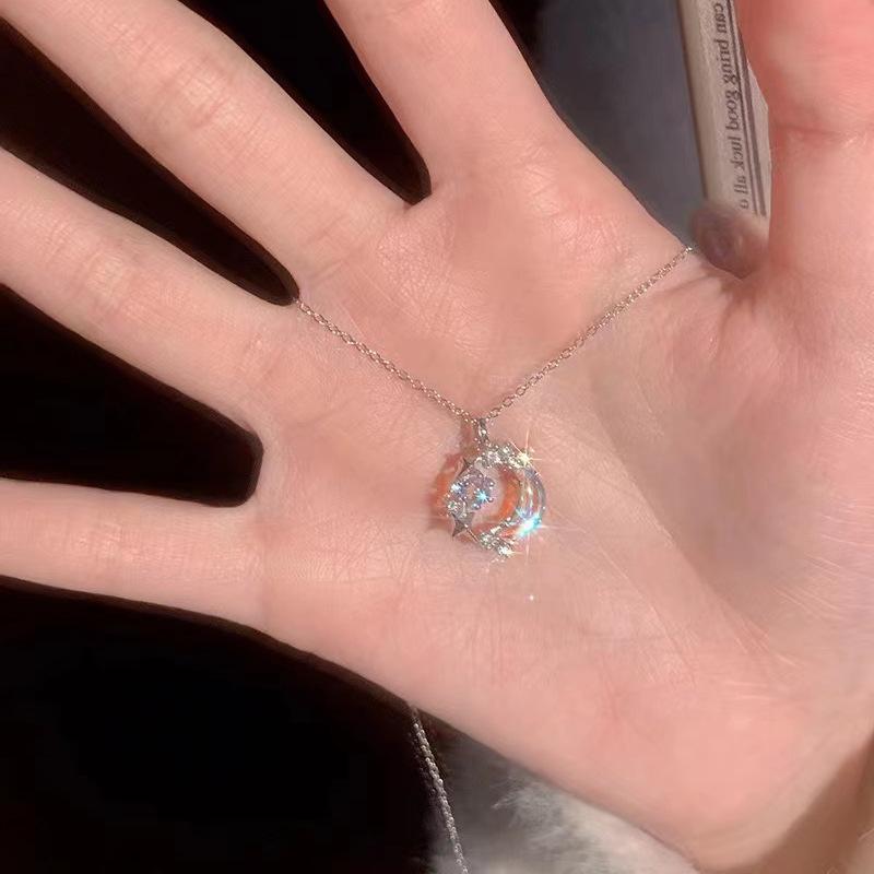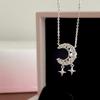 Collar de estrella y luna para mujer, diseño de nicho de lujo ligero, colgante de estrella y luna, cadena de clavícula de acero de titanio con piedra esmaltada de dulce sueño