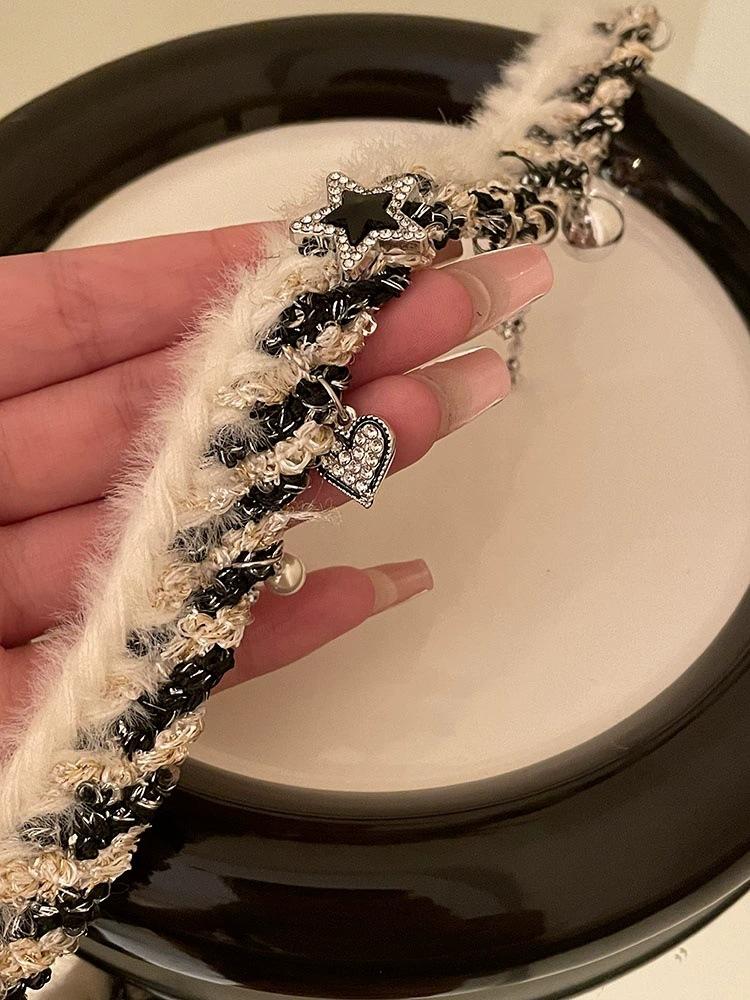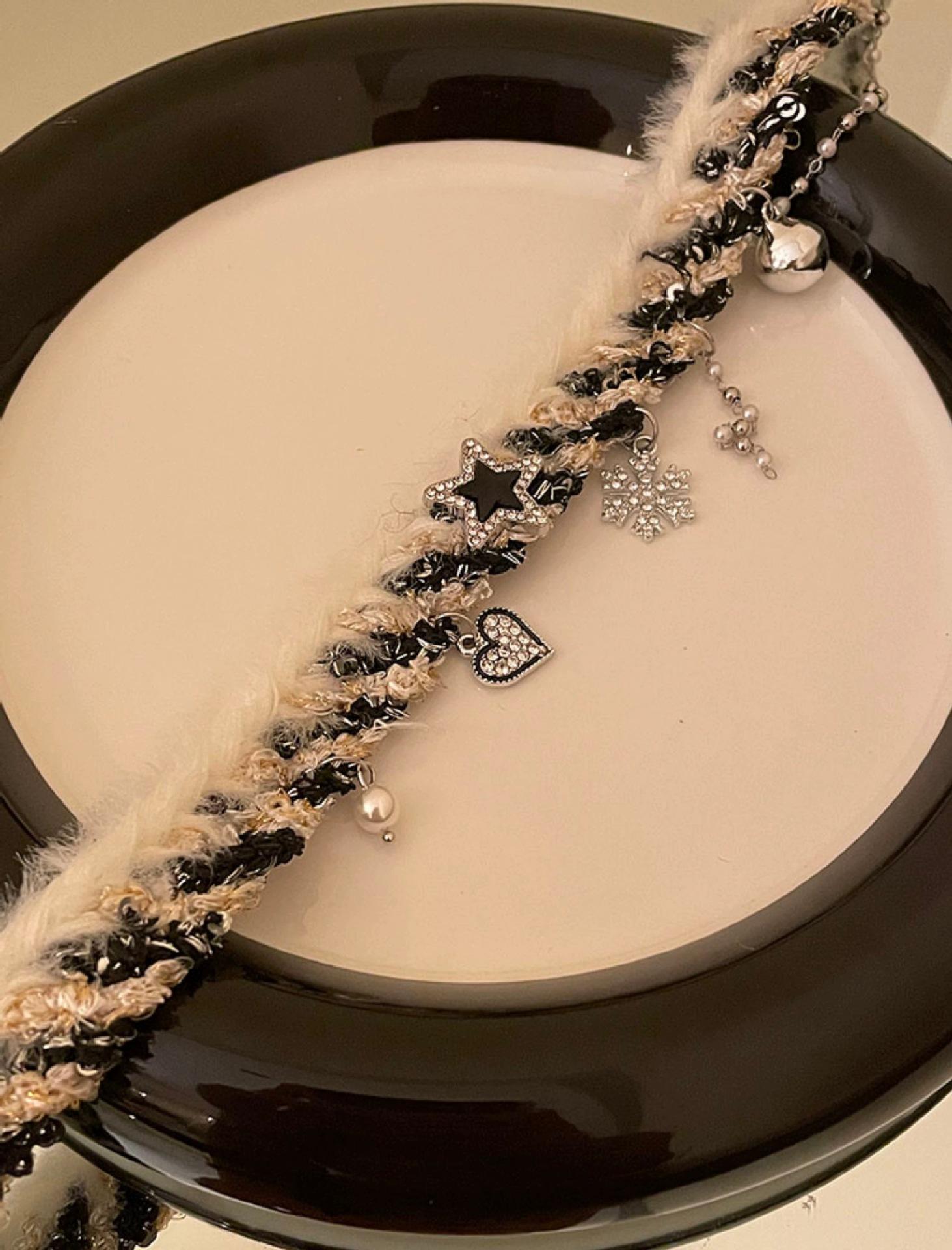 Black and white plush chocker, Black and white plush chocolate-bracelet