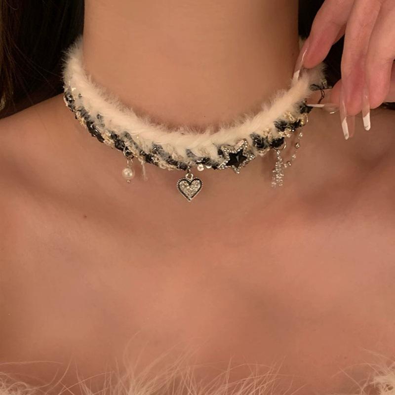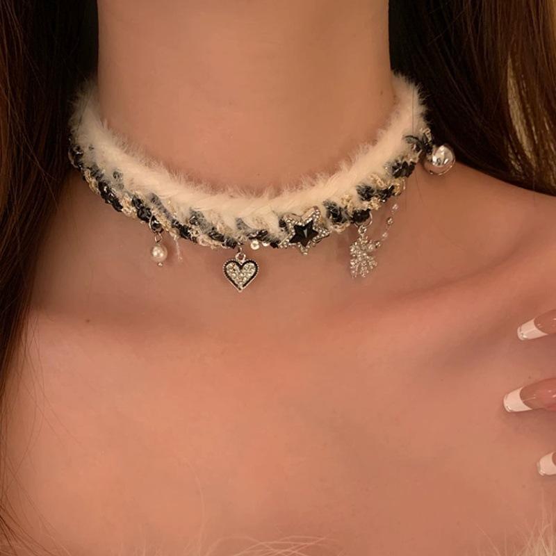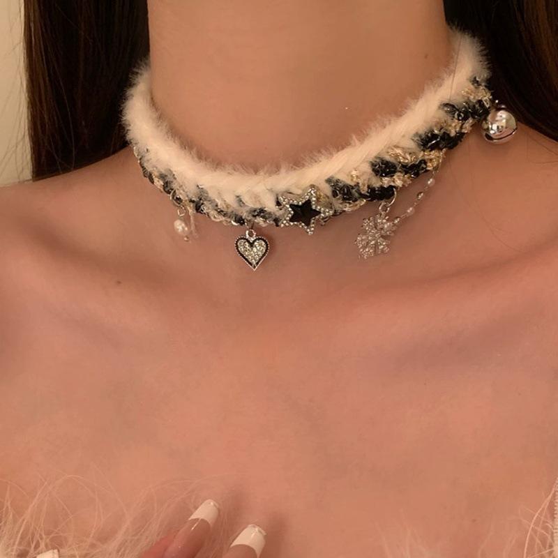 Collar gargantilla de felpa con forma de estrella Y2G para mujer, dulce, genial y sexy, para otoño e invierno, con copos de nieve de alta calidad y campana, para mujer