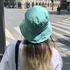 Sombrero de pescador plegable azul cielo de alero ancho y delgado para mujer, parasol de verano, sombrero de alero grande, sombrero japonés de cara redonda de moda para primavera y verano.