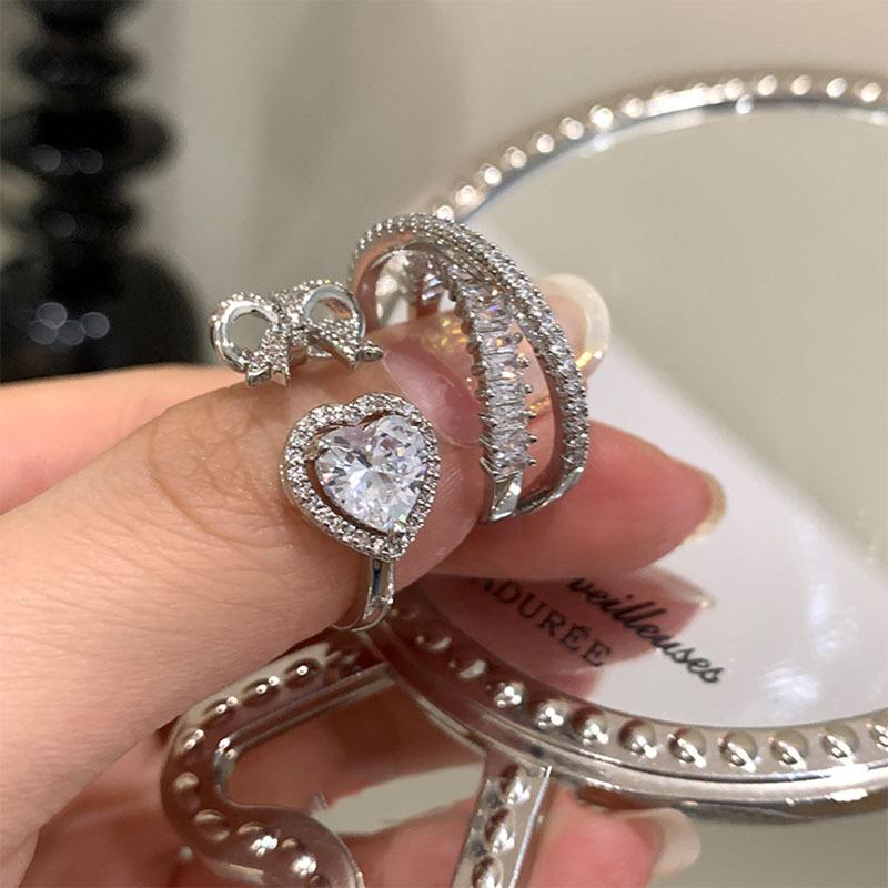 Anillo Abierto de Corazón de Circonita con Diseño Único de Lazo para Mujer Ins Moda Minimalista Lujo Ligero Alta Gama Trendy