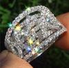 Anillo de compromiso con microincrustaciones de diamantes y circonitas de lujo para mujer, estilo europeo y americano, muy vendido.
