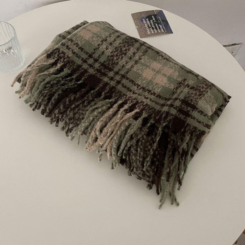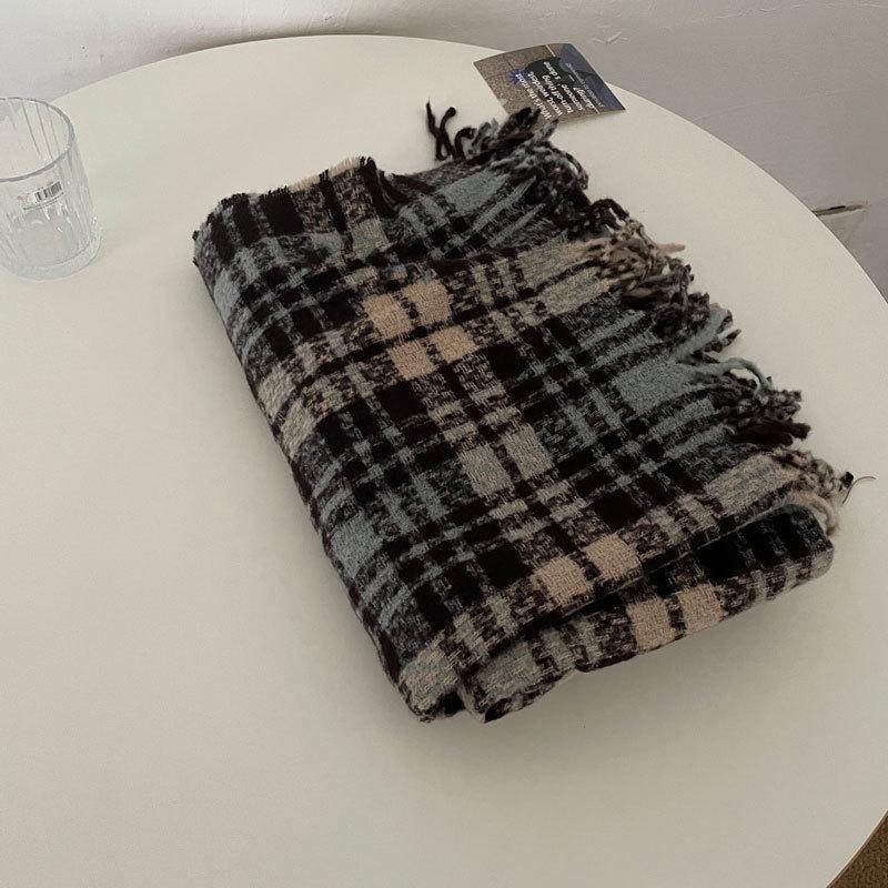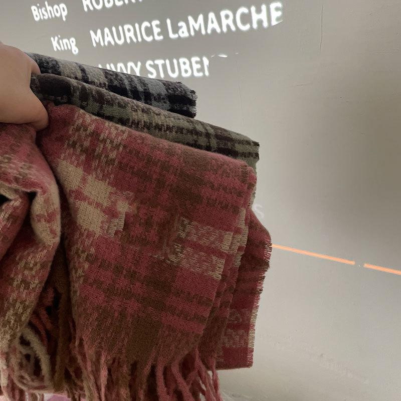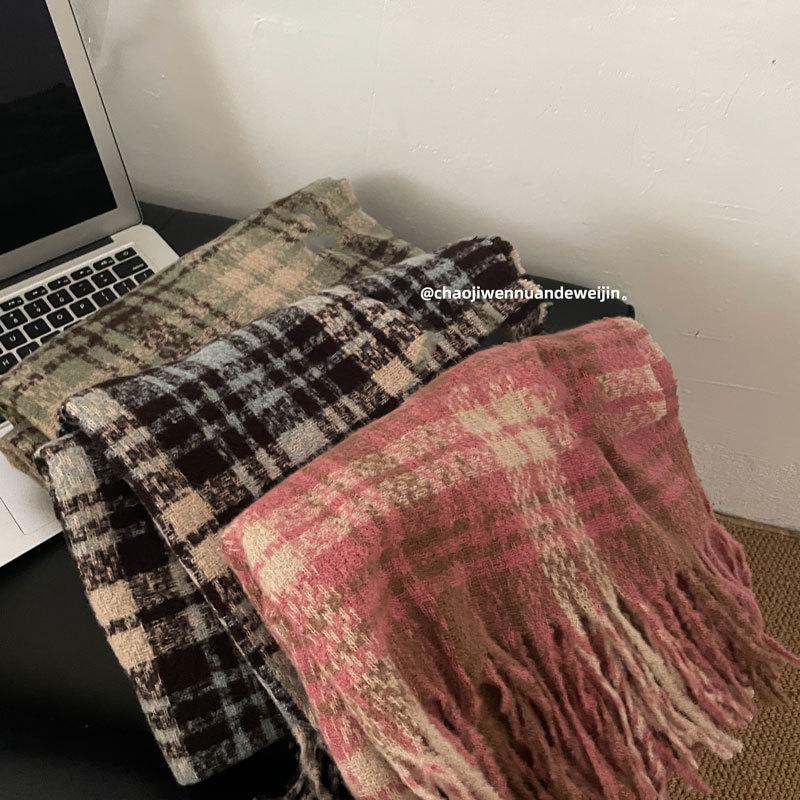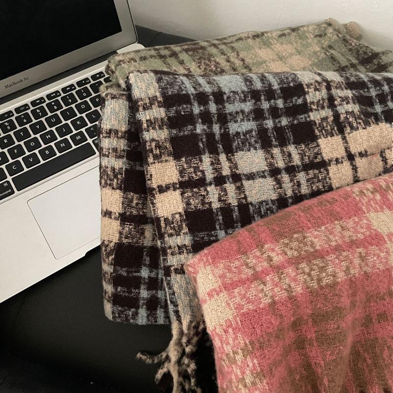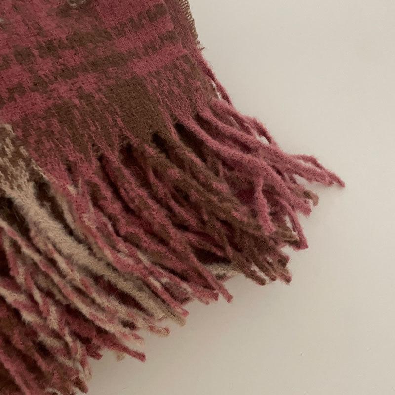 Color Rosa Invierno avanzado versátil estilo universitario casual estilo coreano simple cálido blanco a cuadros lana tejida bufanda