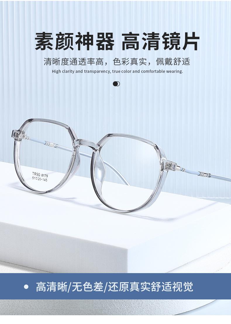 2023 nuevo marco de personalidad para damas TR90 HD espejo plano mujeres marco de moda gafas fabricantes al por mayor mujeres