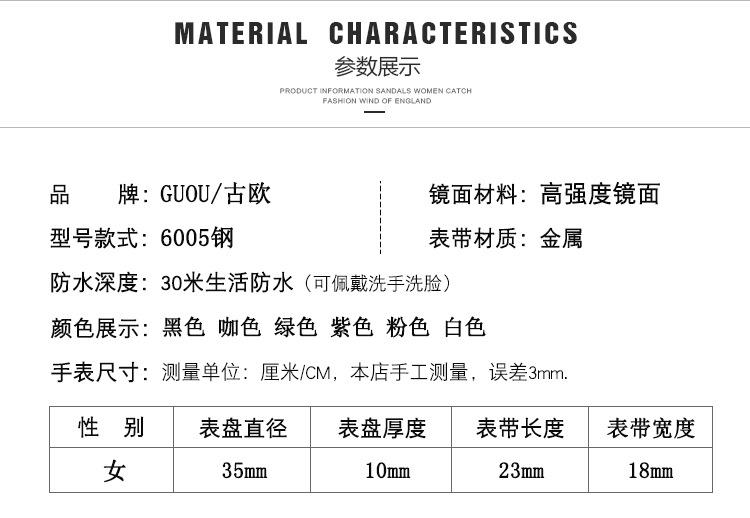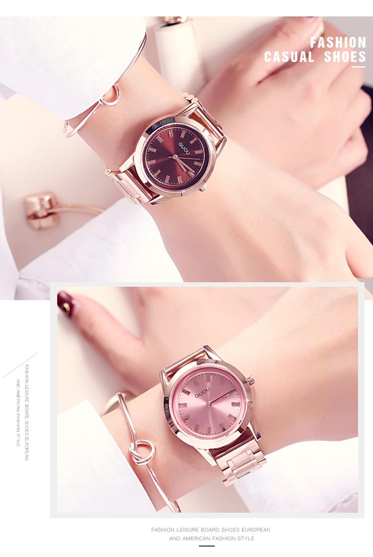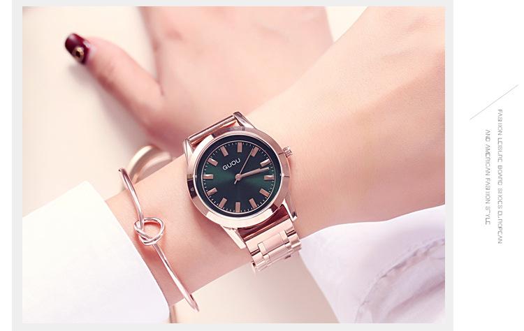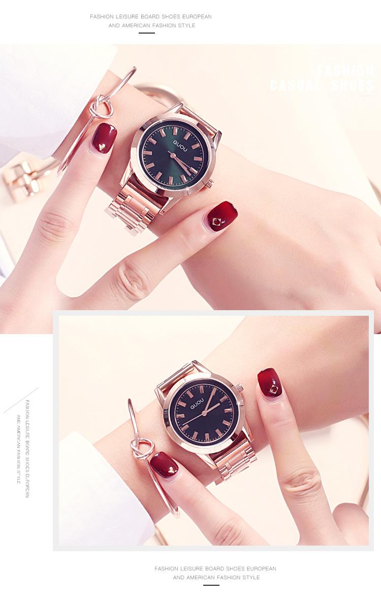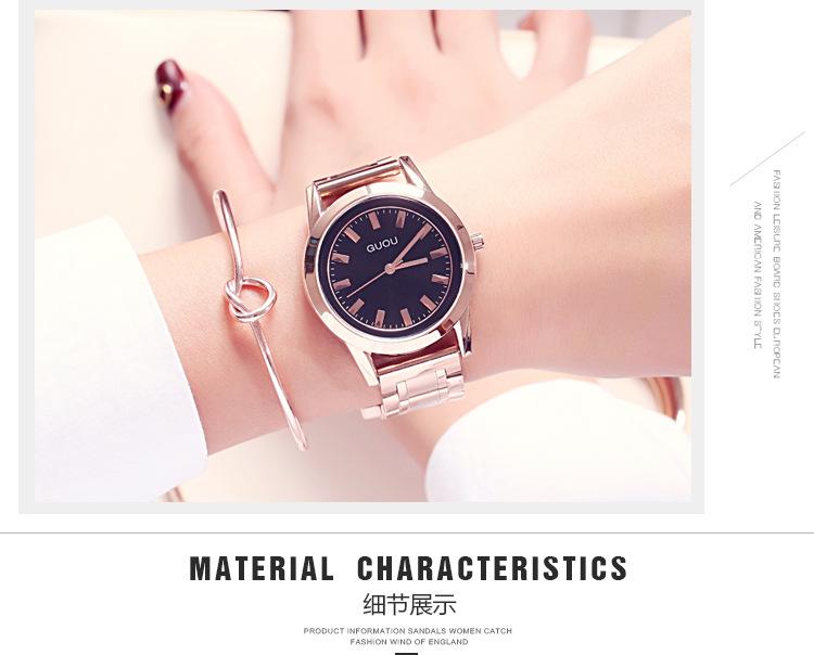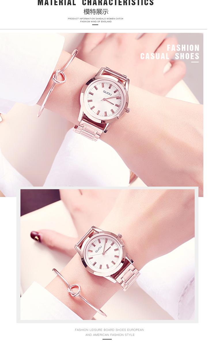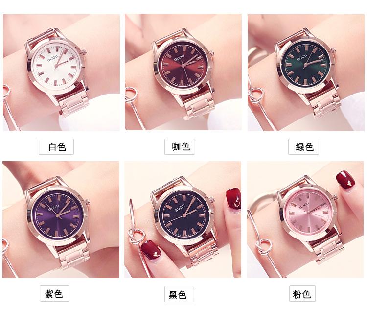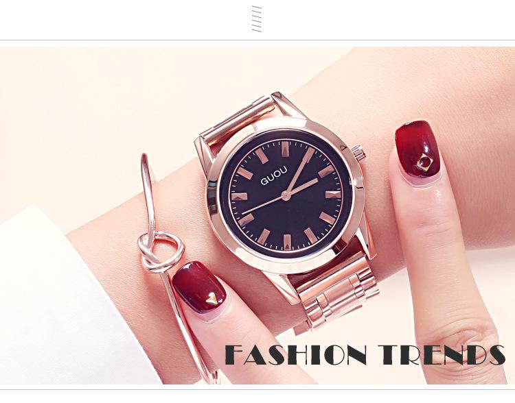 GUOU antiguo europeo 6005 nueva tendencia reloj de pulsera de acero para mujer reloj de cuarzo de moda casual resistente al agua una generación de cabello